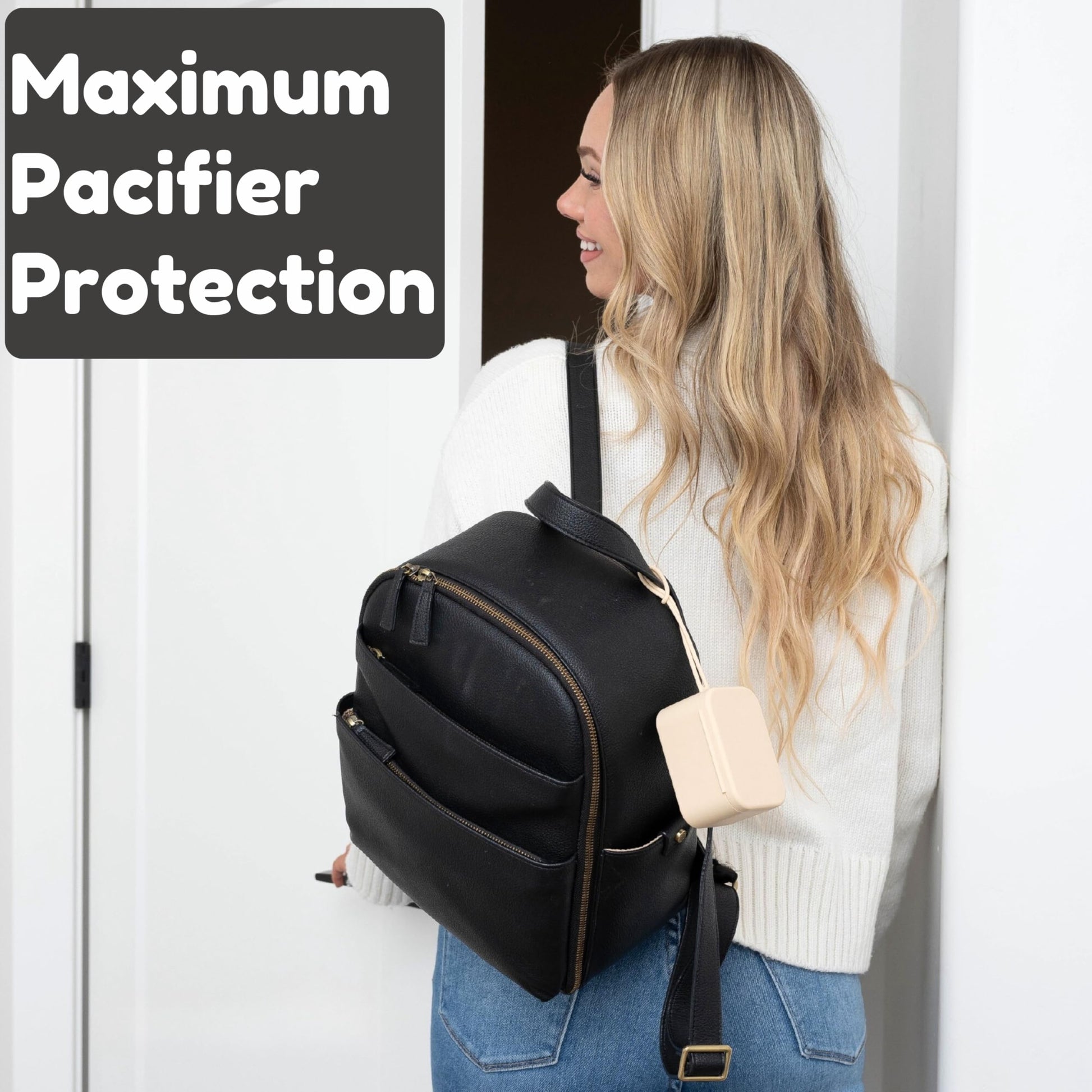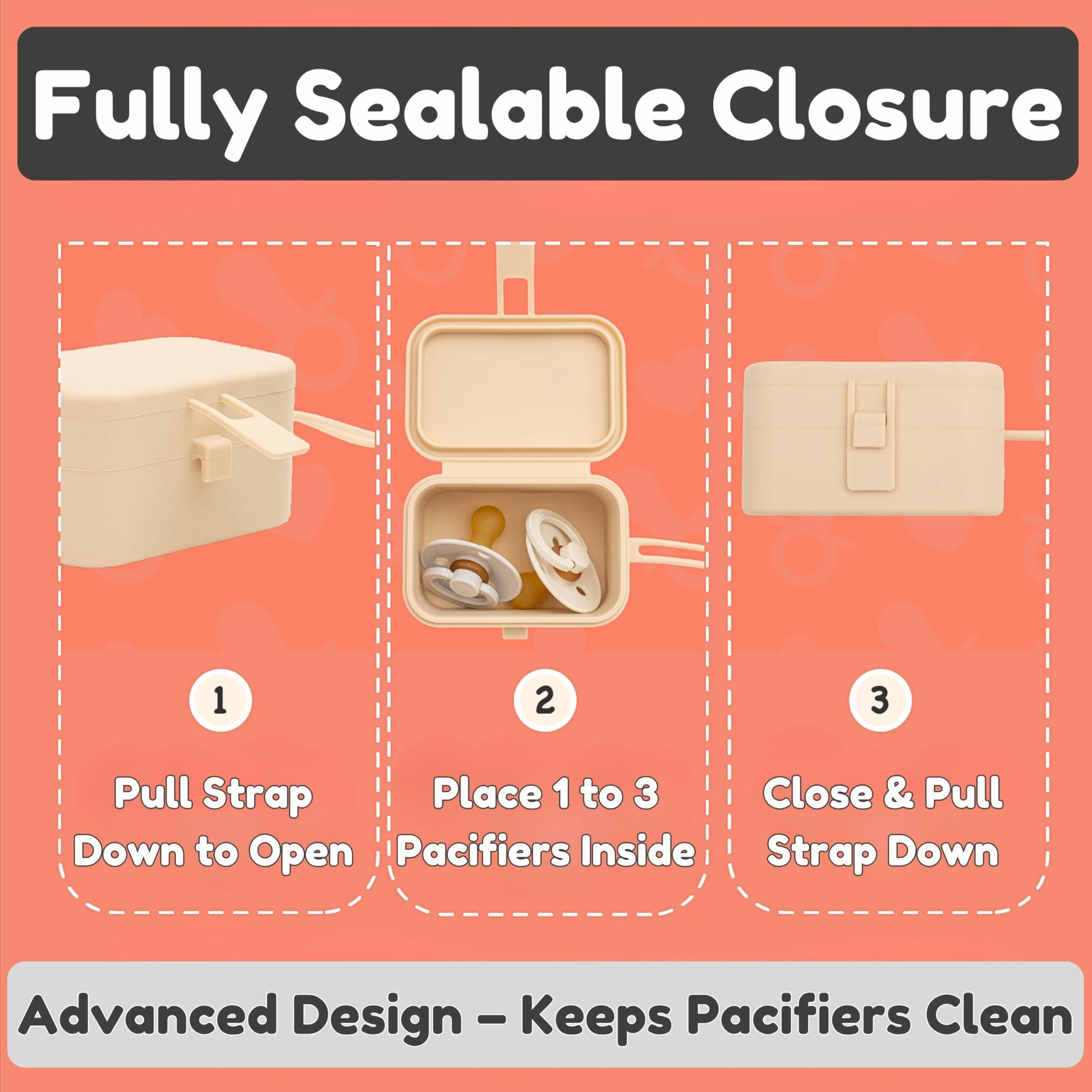 - Q: Does the case protect pacifiers from dirt and dust? A: Yes, the fully sealable closure of the silicone pacifier case protects pacifiers from dust, dirt, and impurities when not in use.