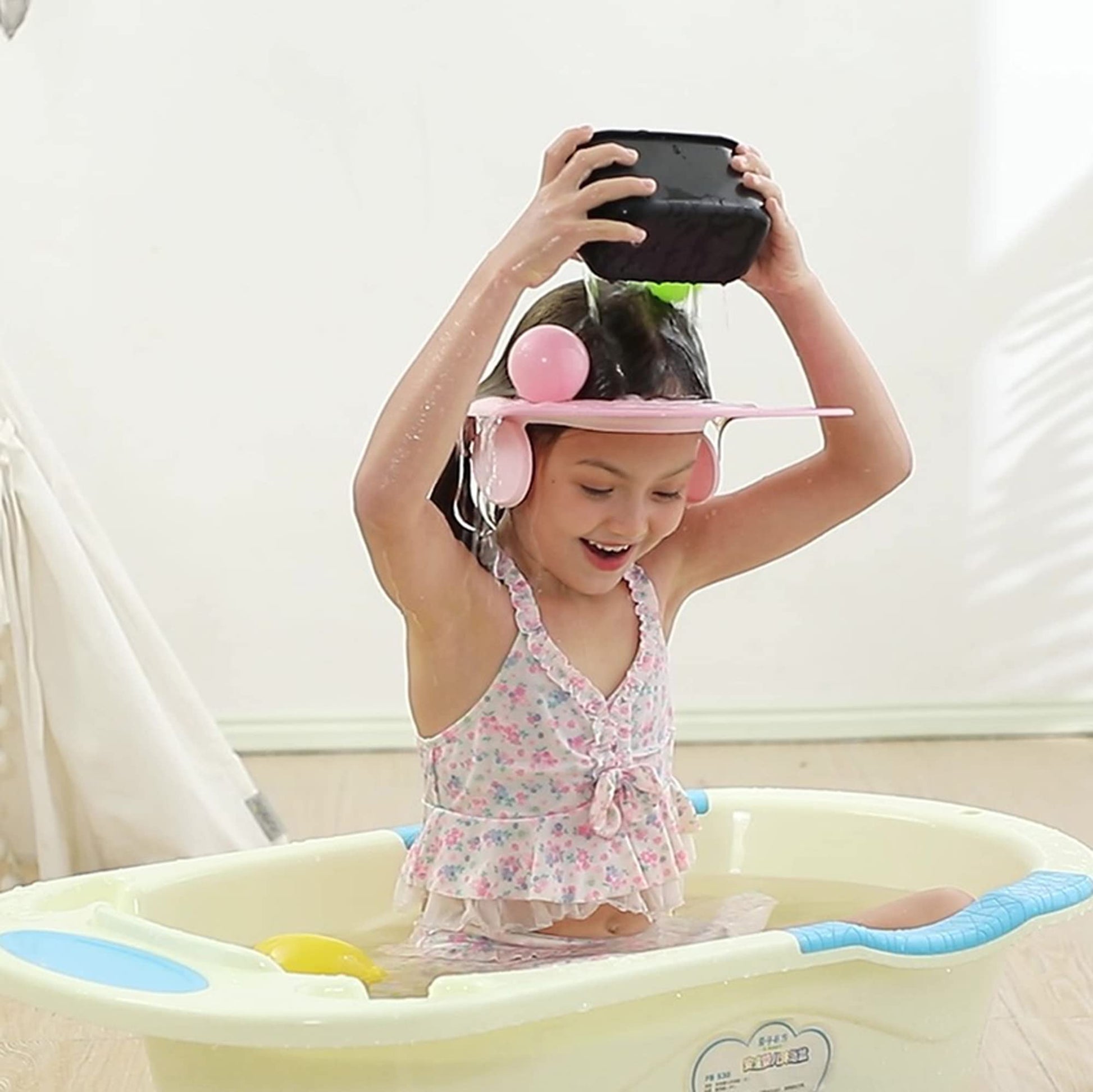 - Q: How does the baby shower cap prevent water from getting into my child's eyes? A: The baby shower cap has a design that prevents water and foam from running into your child's eyes and ears, making bath time more comfortable and enjoyable.