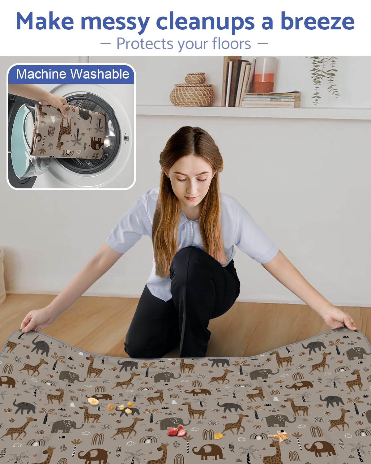 - Q: Does the mat help with post-meal cleanup? A: Yes, the splat mat is designed to catch food and spills from the high chair, significantly reducing cleanup time after meals.