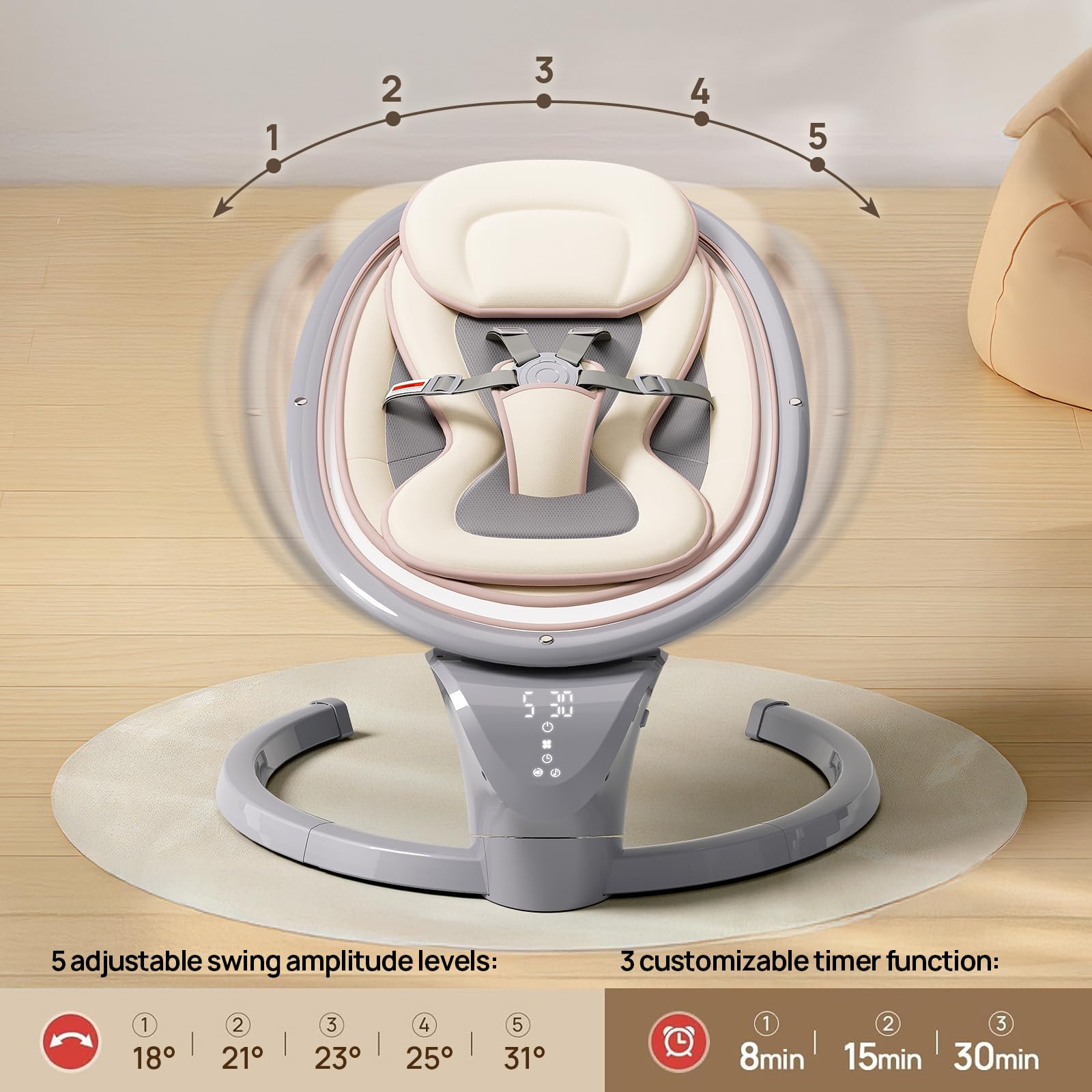 - Q: Can I set a timer for the Baby Swing? A: Yes, the Baby Swing includes a timing setting feature that allows you to set it for 8, 15, or 30 minutes of use.