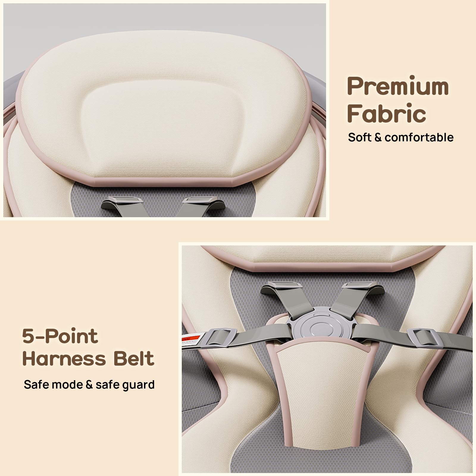 - Q: What safety features does the Baby Swing include? A: The Baby Swing is equipped with a 5-point safety harness to securely hold your baby in place and prevent any accidental falls.