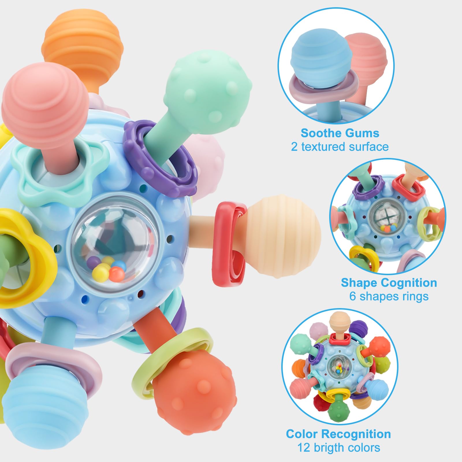 - Q: Can this teether be used as a sensory toy? A: Yes, this teething toy is also a sensory toy, with various features like a rattle ring and twisting ball to provide sensory stimulation.