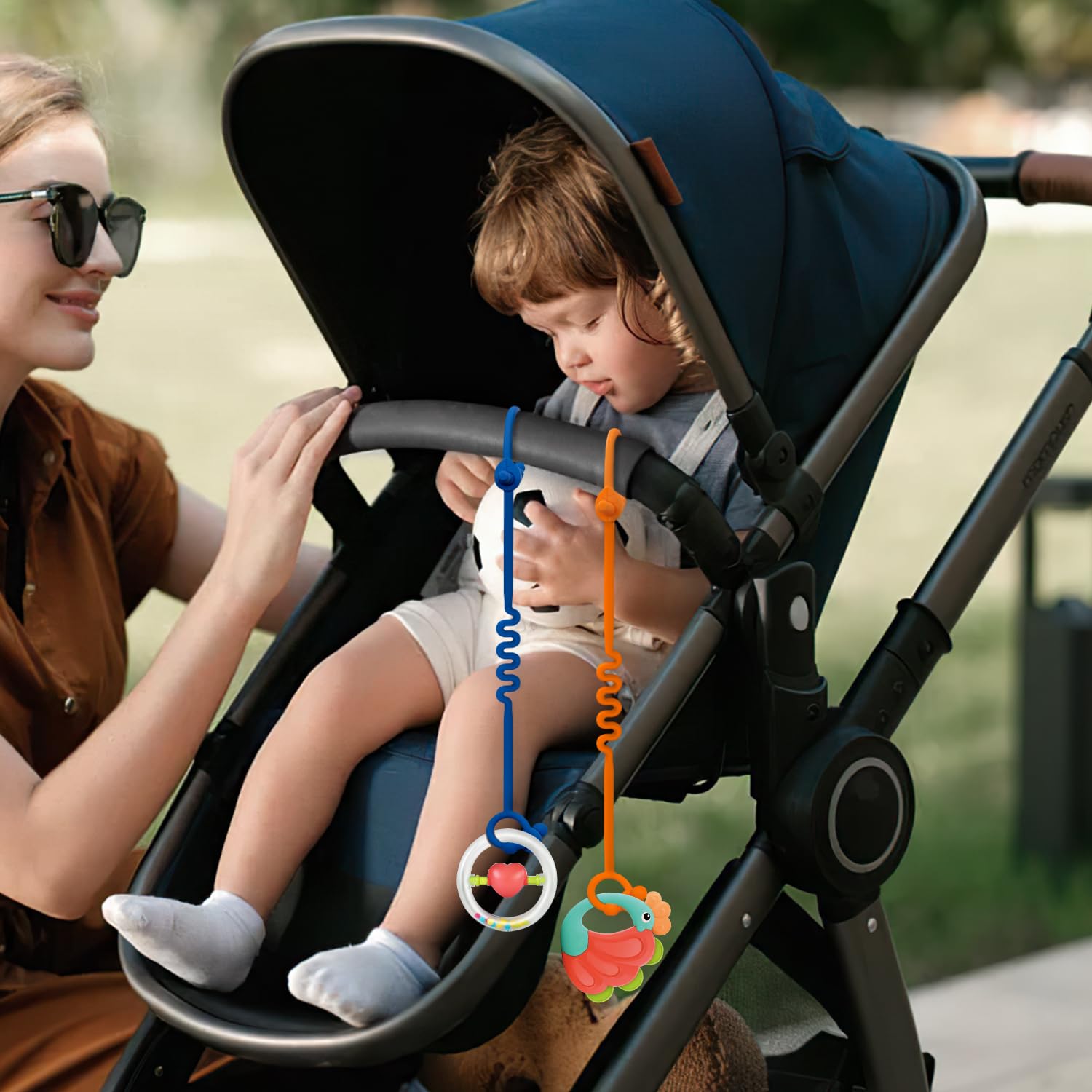 • Q: Are the toy straps safe for my baby? A: Yes, the toy straps are made from 100% food-grade silicone and are free from harmful chemicals such as BPA, phthalates, and PVC, making them safe and non-toxic for your baby.