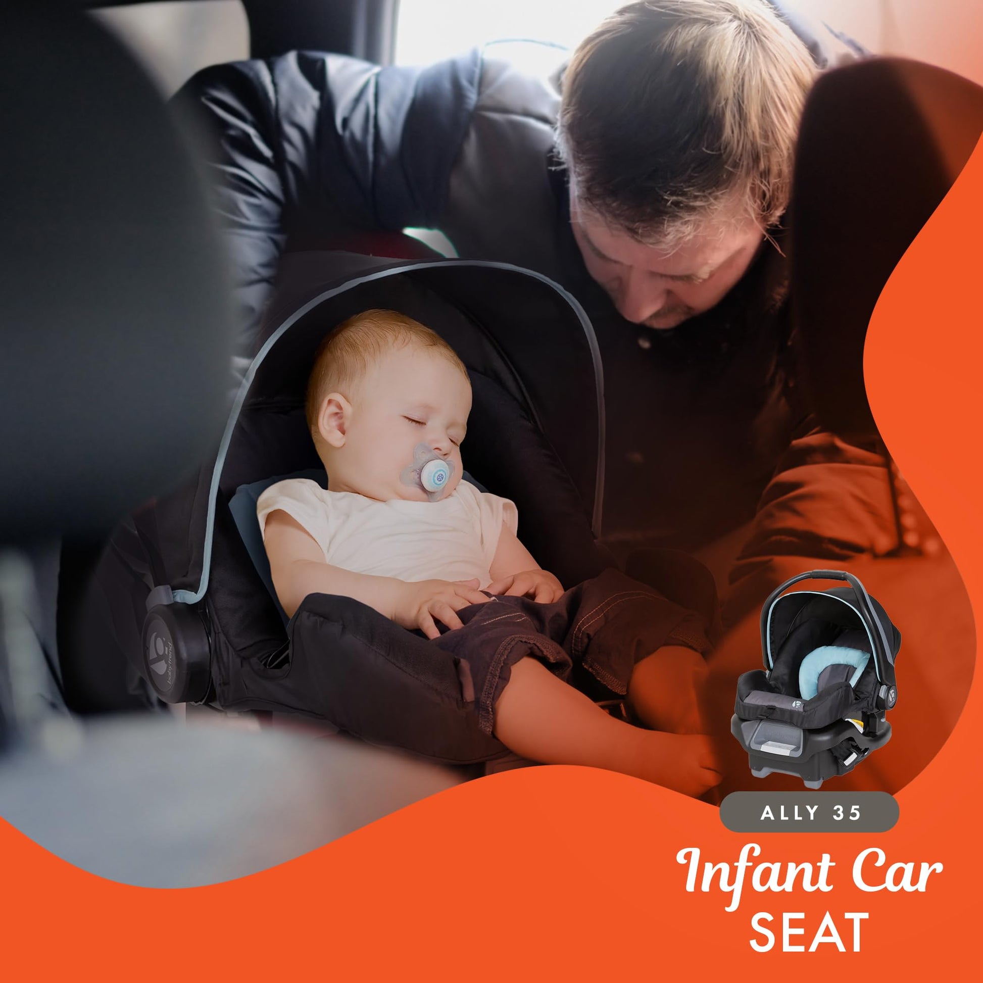 - Q: What safety features does the Ally 35 Infant Car Seat include? A: The Ally 35 Infant Car Seat includes safety features such as a 5-point harness system and side impact protection to ensure your baby's safety during travel.