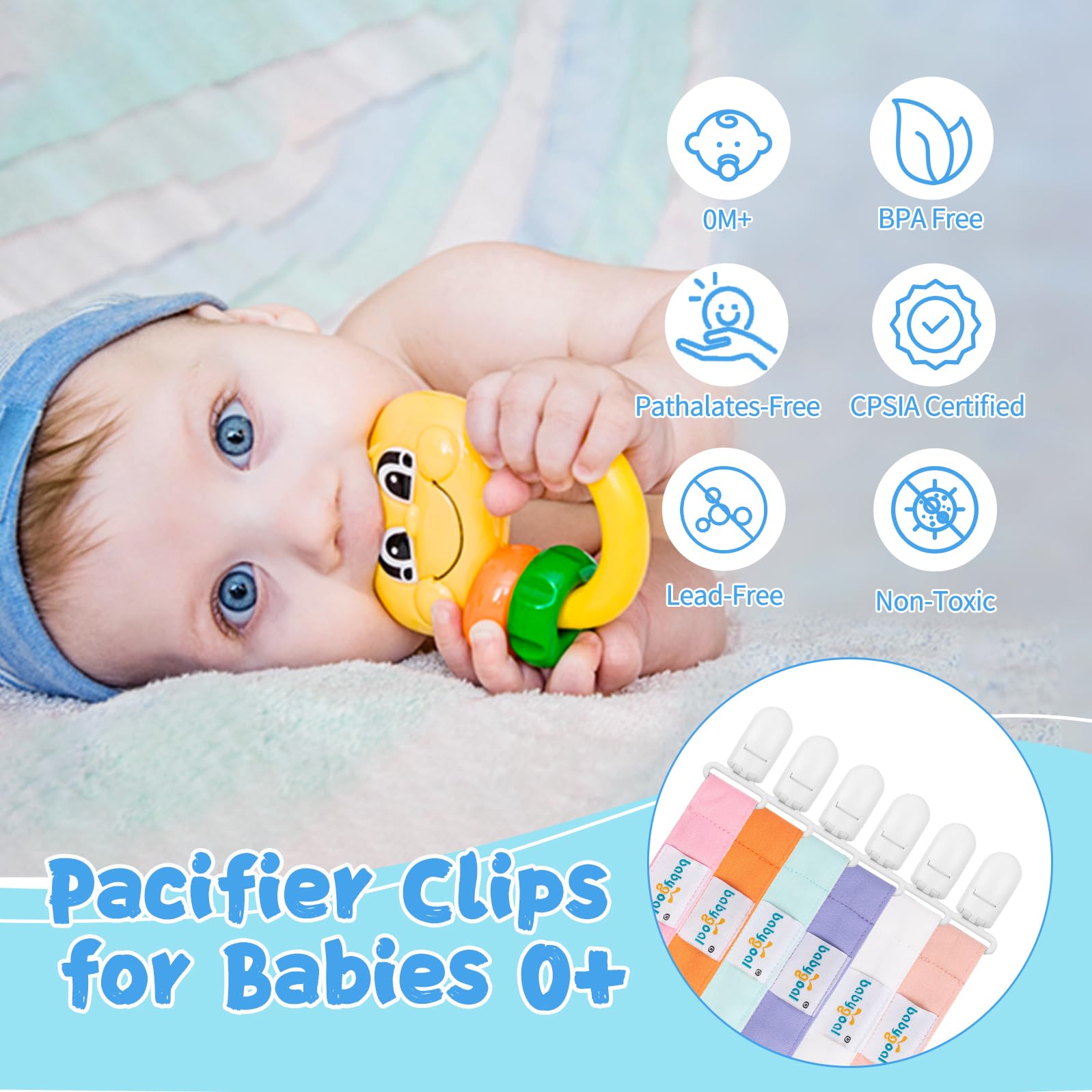 - Q: Do these clips come in different colors? A: Yes, the Babygoal Pure Color Pacifier Clips come in a variety of colors, allowing you to choose options that match your baby's outfits or nursery decor.