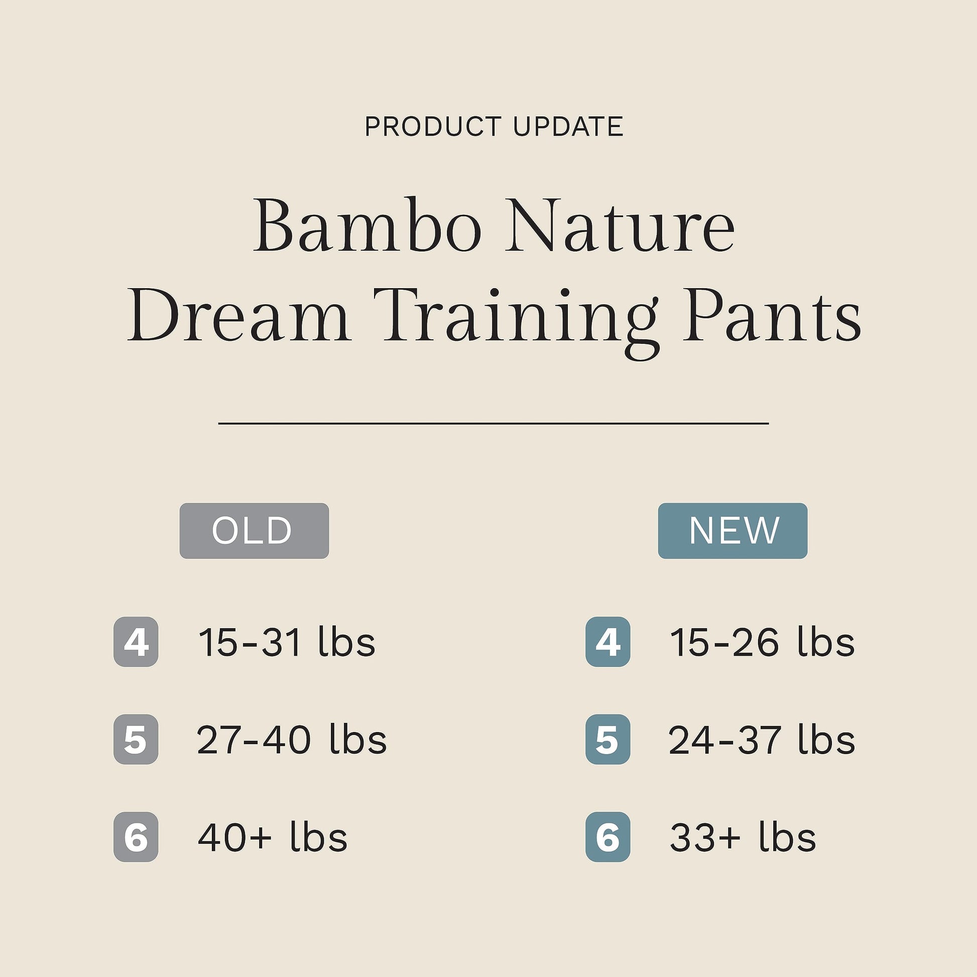 • Q: What sizes are available for Bambo Nature Premium Training Pants? A: Bambo Nature Premium Training Pants are available in sizes 4 to 6, with Size 5 fitting toddlers in the weight range of 27 to 40 pounds.