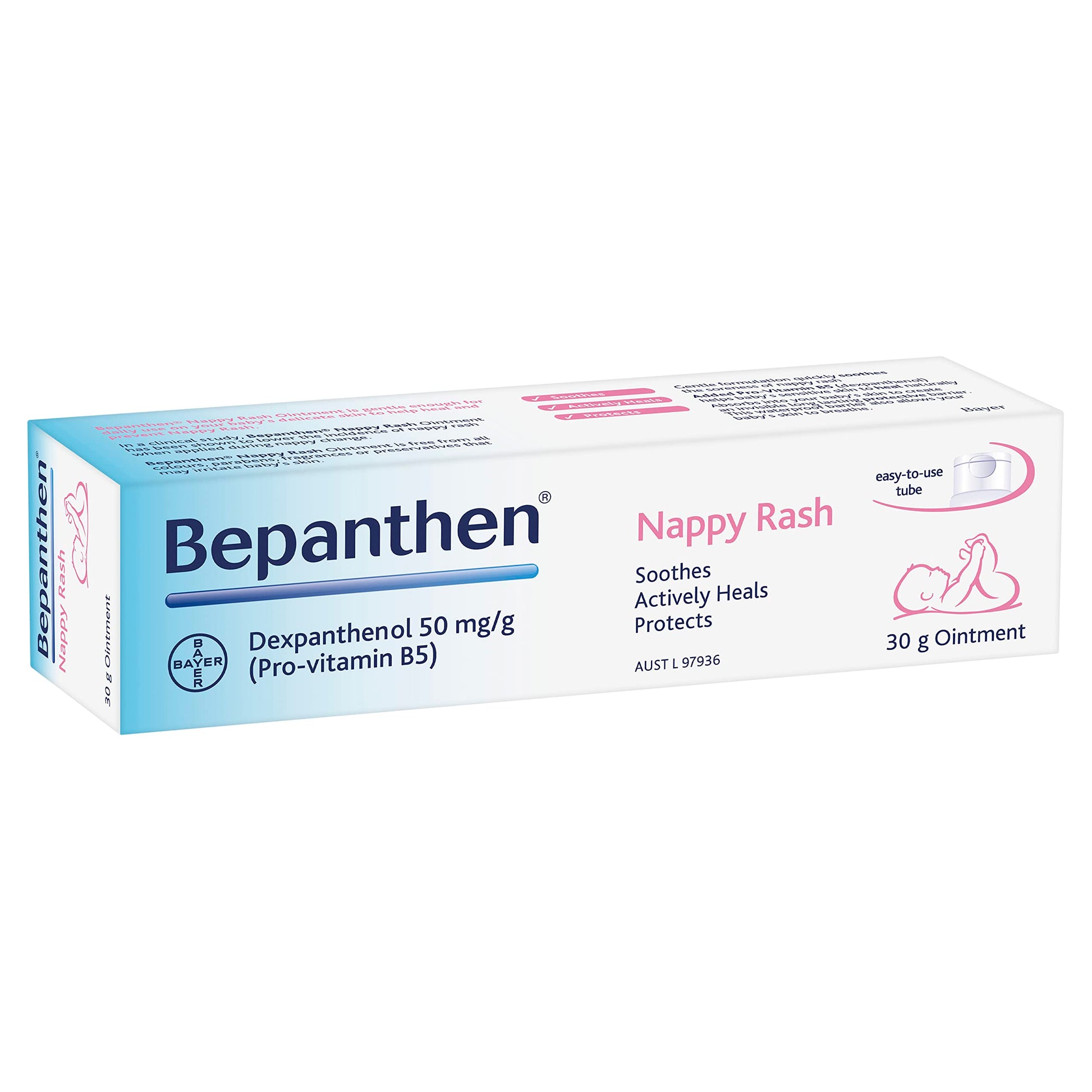 - Q: What size does the Bepanthen Nappy Rash Ointment come in? A: Bepanthen Nappy Rash Ointment is available in a 30g tube, which is tamper-resistant for safety.