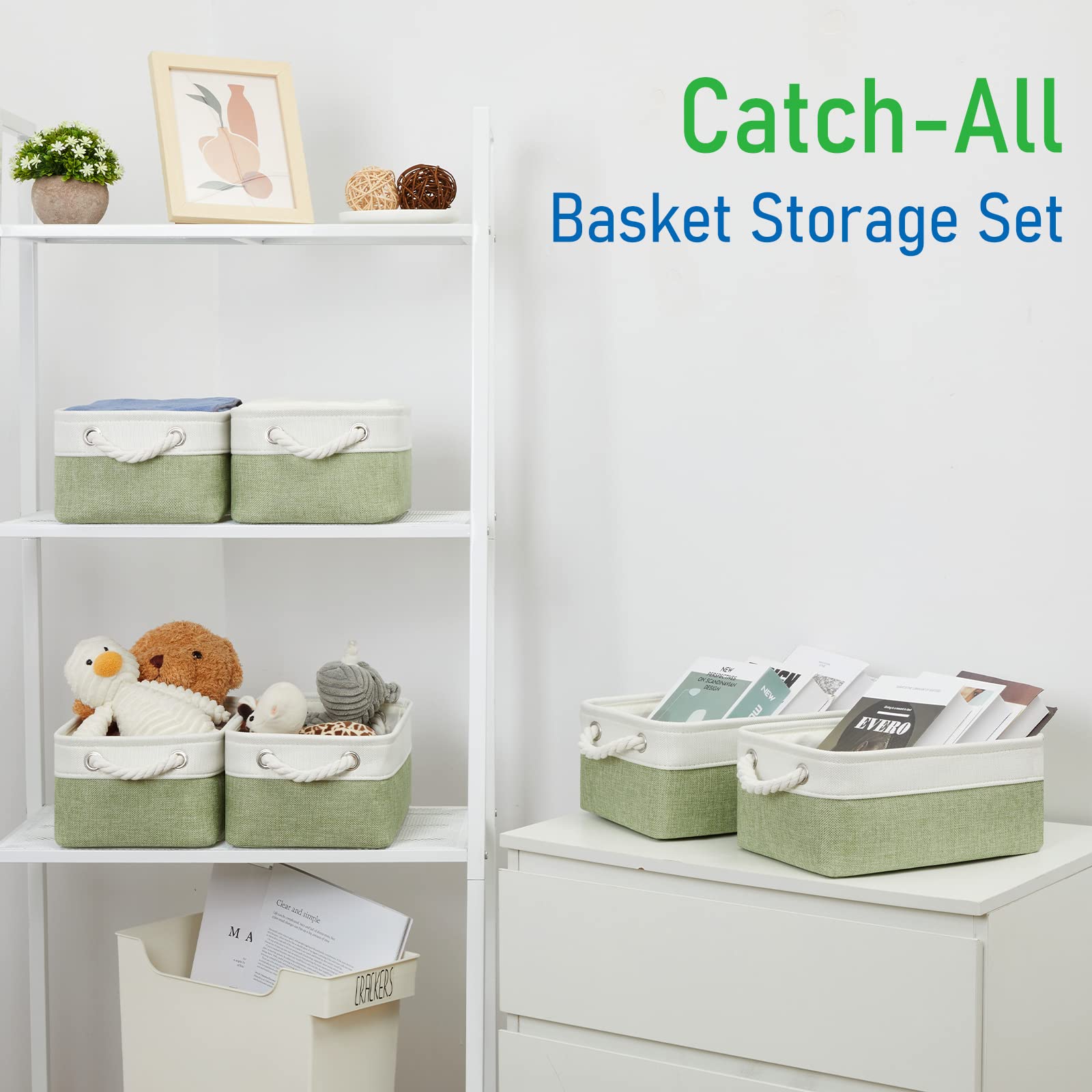 - Q: What are some suggested uses for these baskets? A: These baskets are ideal for organizing linen closets, living rooms, bathrooms, playrooms, and laundry rooms. They can also be used for gifting or nursery storage.