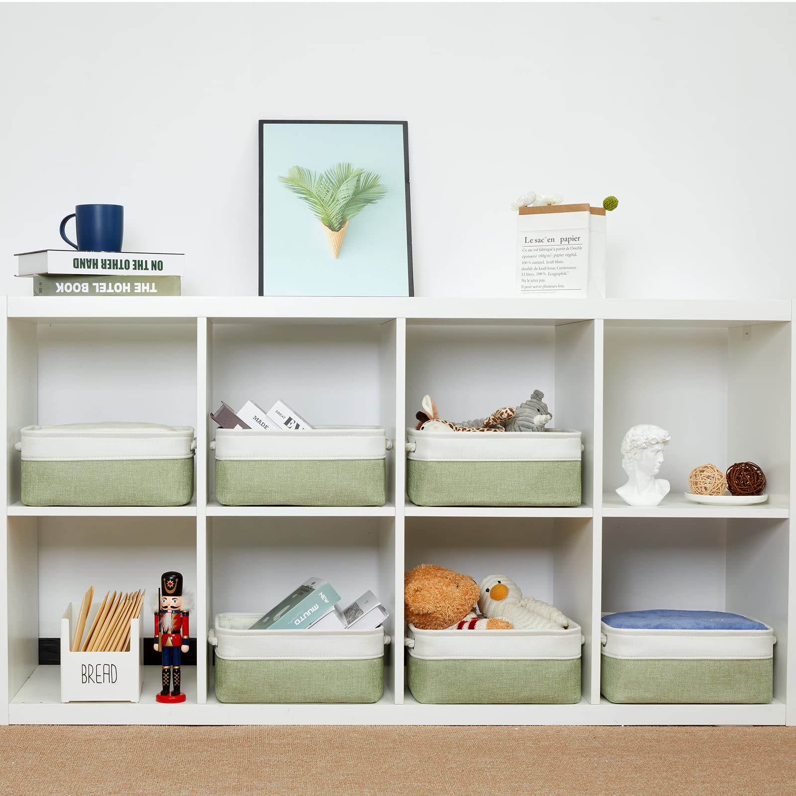 - Q: How many baskets are included in this set? A: The set includes 6 collapsible storage baskets.