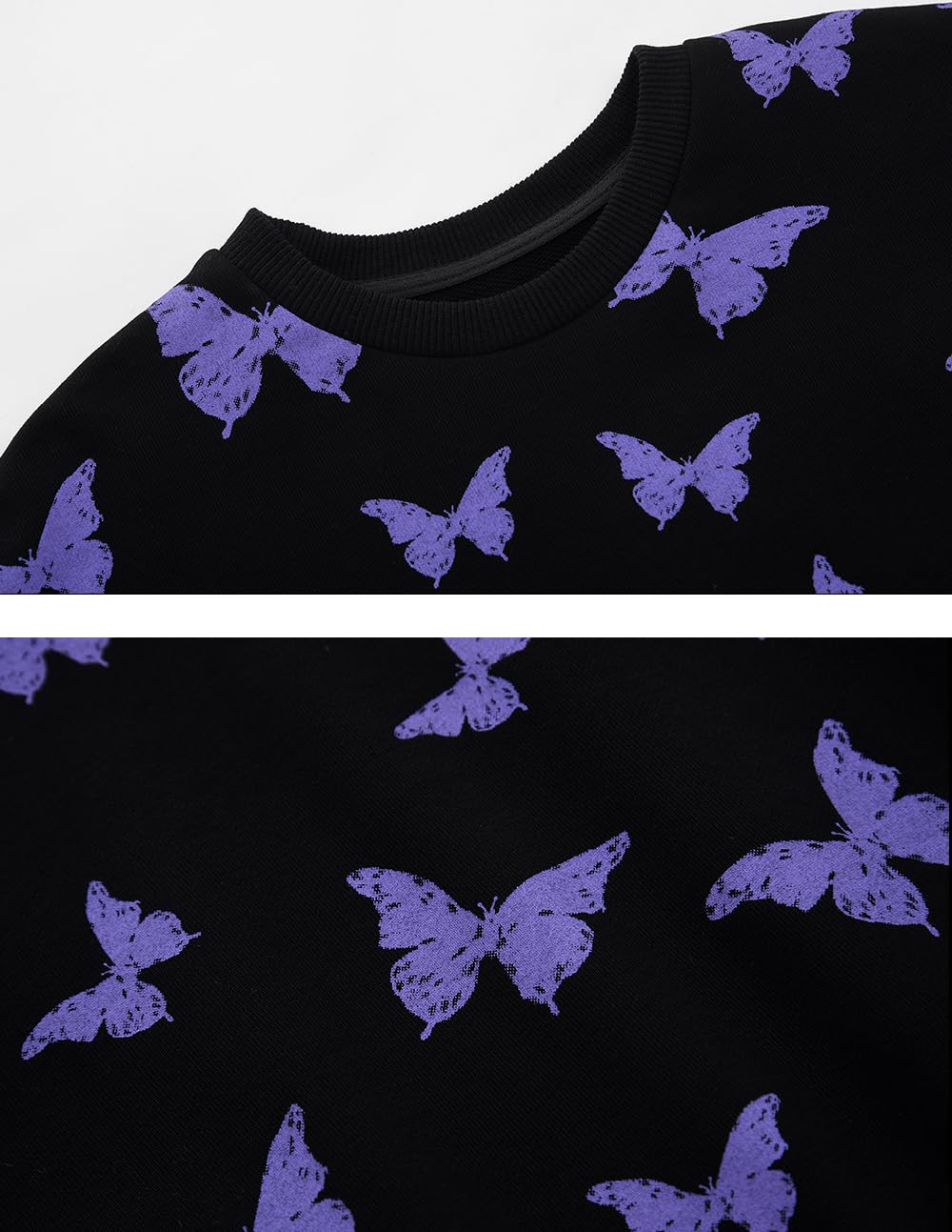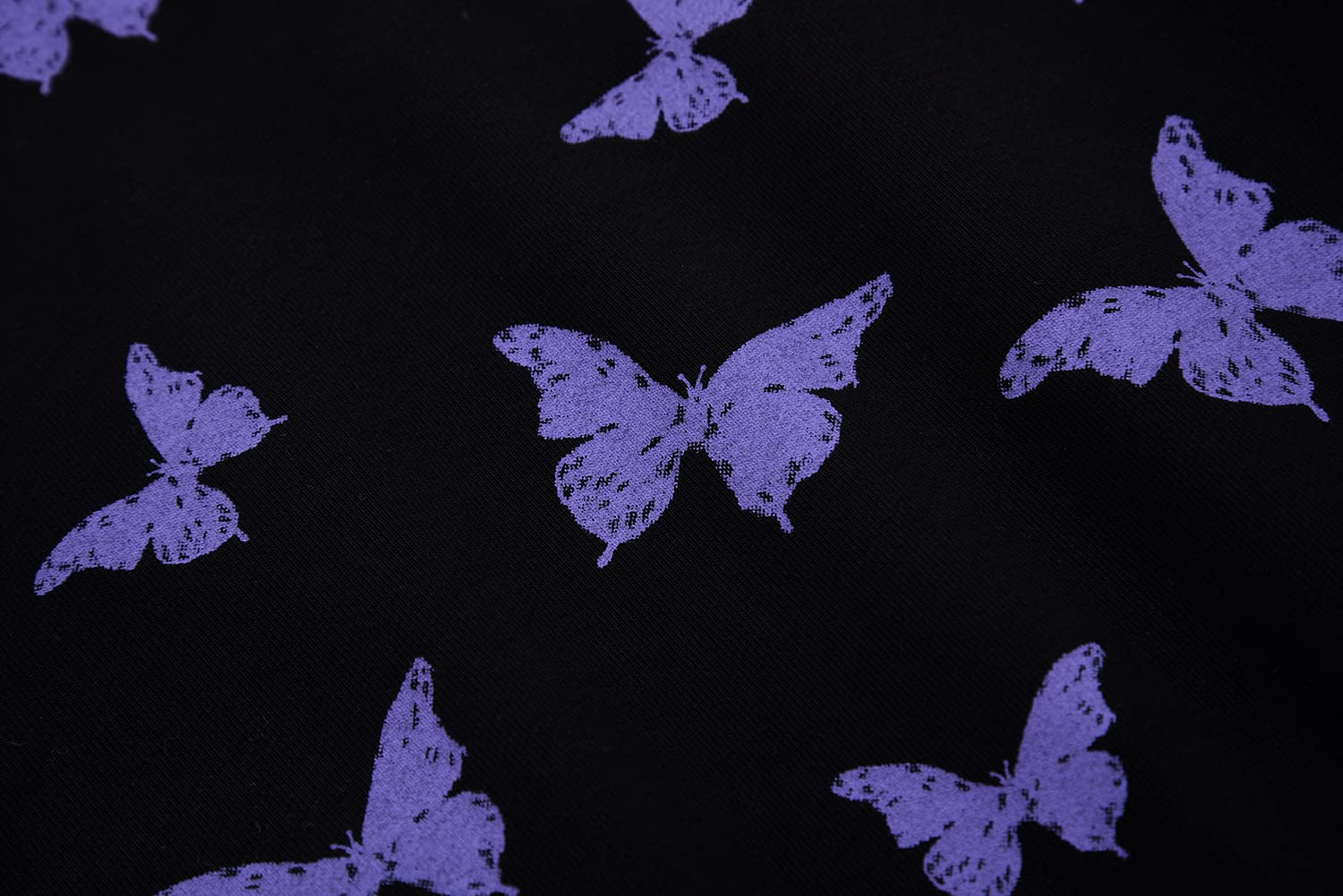 - Q: What colors does this sweater come in? A: This specific model comes in a black color with a butterfly graphic design.