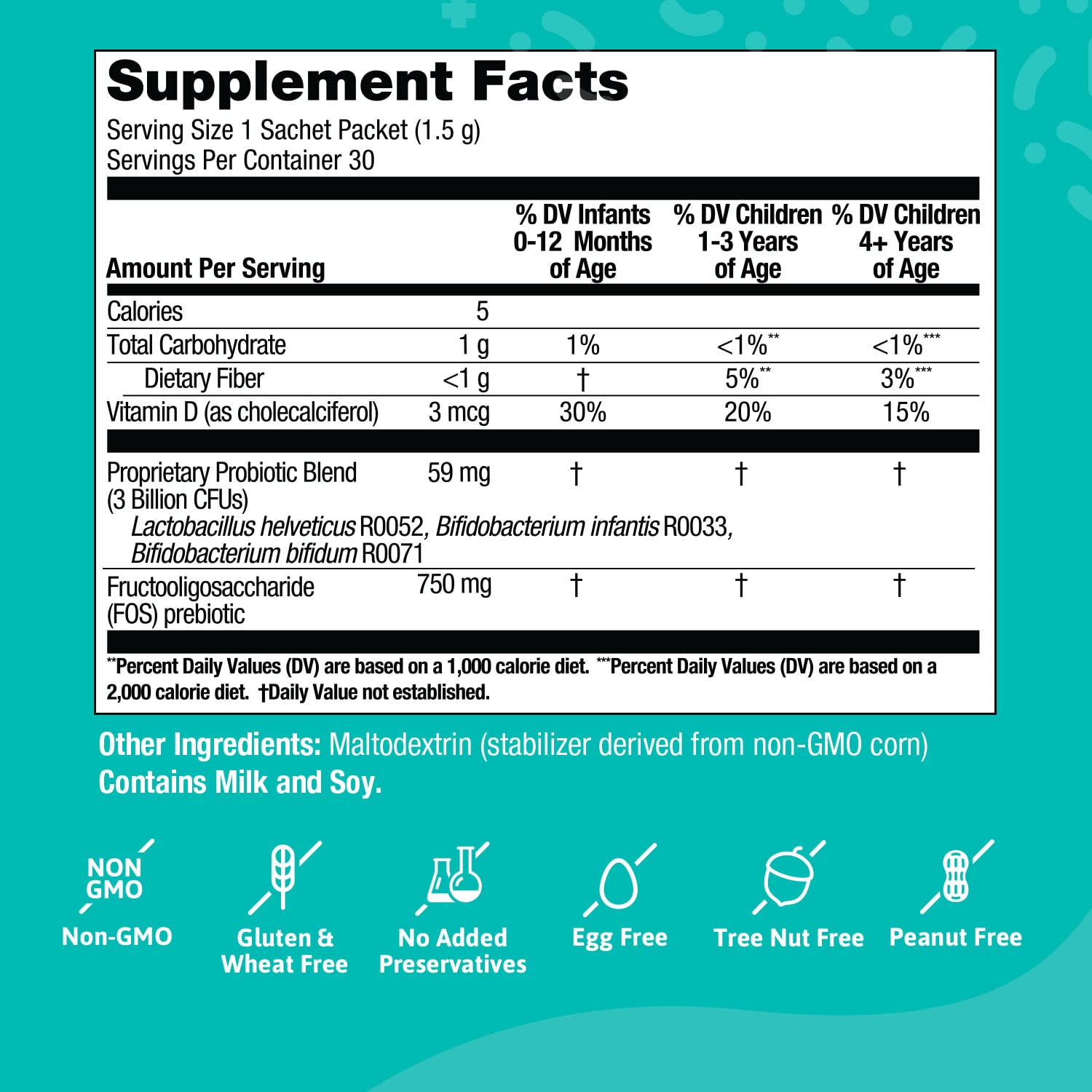 - Q: How does the probiotic powder mix with food or liquids? A: The flavorless probiotic powder easily mixes with liquids such as breast milk, water, or formula, as well as soft foods like cereal, making it convenient for feeding.
