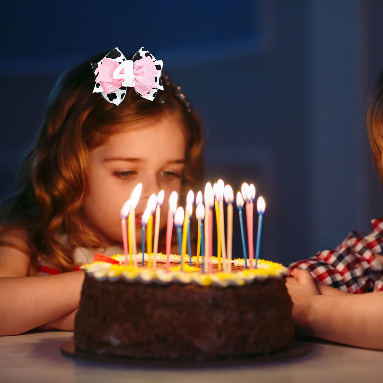 - Q: Do the clips come in different colors or styles? A: This set features a cow print design with white number clips, designed specifically for a 4th birthday celebration.
