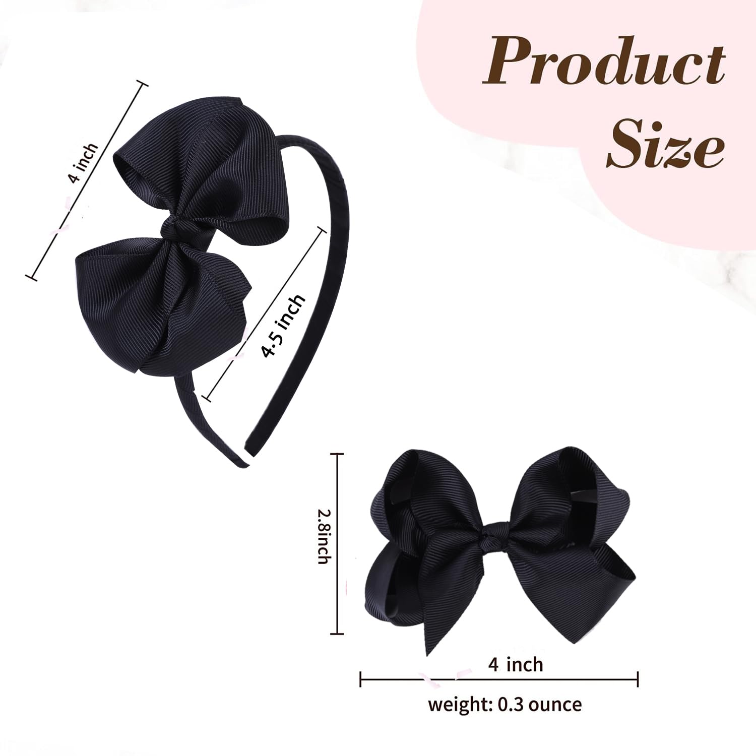 - Q: What is included in the Black Bow Headband & Hair Bows Set? A: The set includes one black bow headband and two 4-inch bow hair clips.
