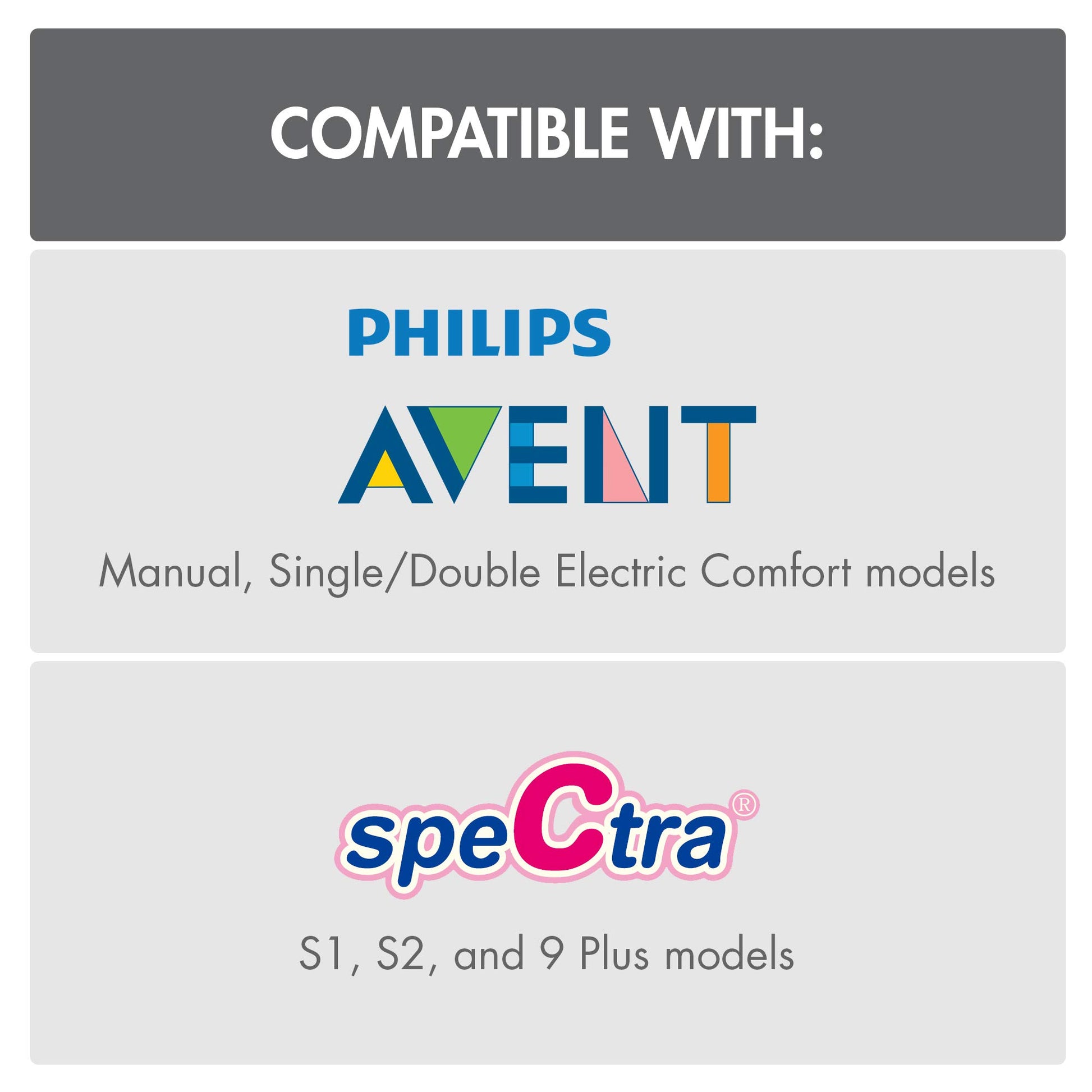 - Q: What breast pump models are compatible with this adapter? A: This adapter is compatible with Avent Manual, Single/Double Electric Comfort models, as well as Spectra S1, S2, and 9 Plus models.