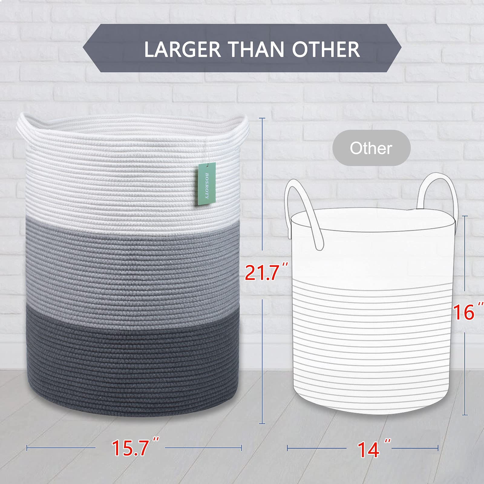 - Q: What are the dimensions of the BOSROTY Large Laundry Hamper? A: The BOSROTY Large Laundry Hamper measures 16 inches in diameter and 22 inches in height.