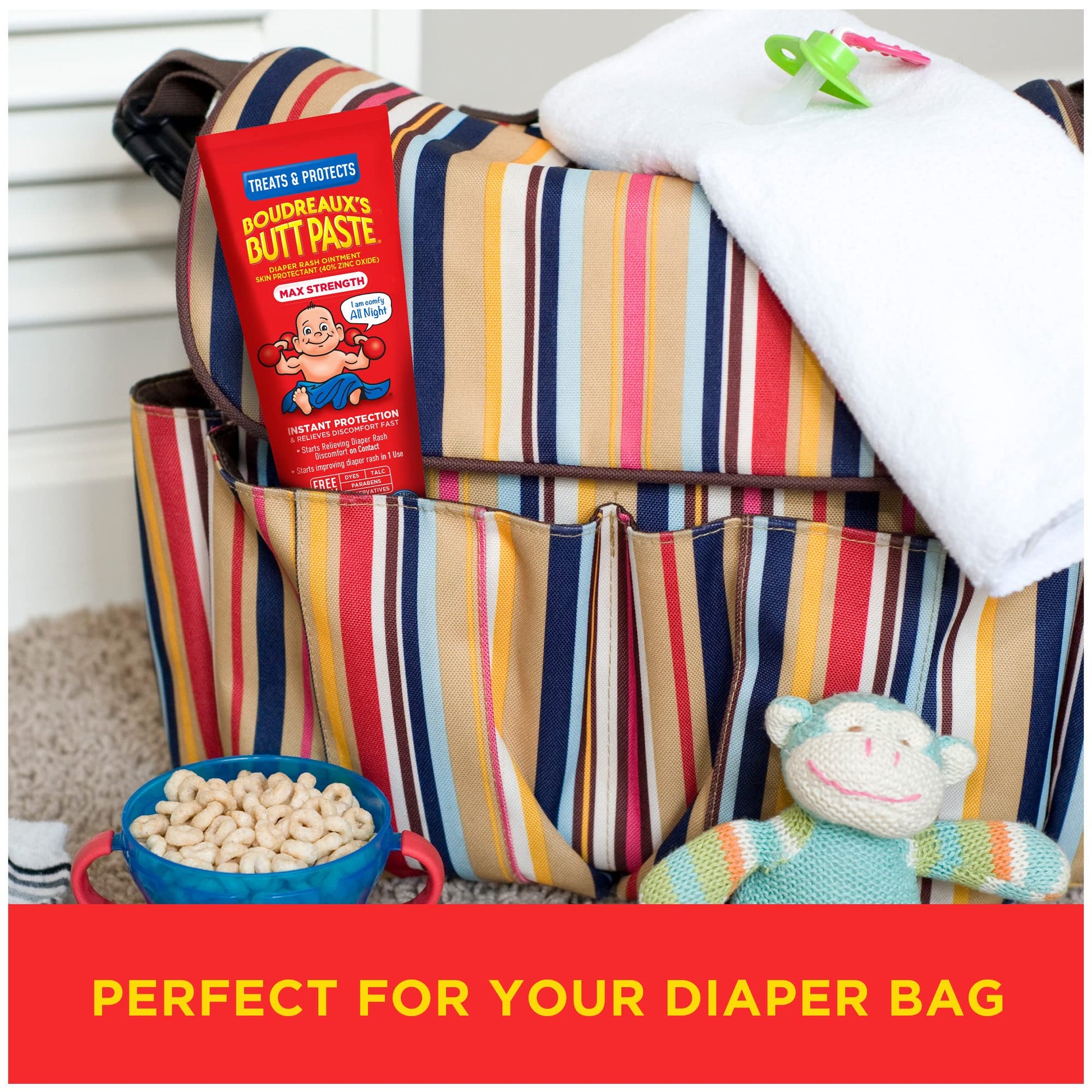 - Q: What is Boudreaux's Butt Paste Maximum Strength Diaper Rash Cream used for? A: Boudreaux's Butt Paste Maximum Strength Diaper Rash Cream is designed to help protect and soothe irritated skin due to diaper rash. It forms a barrier that seals out moisture and provides relief from discomfort.