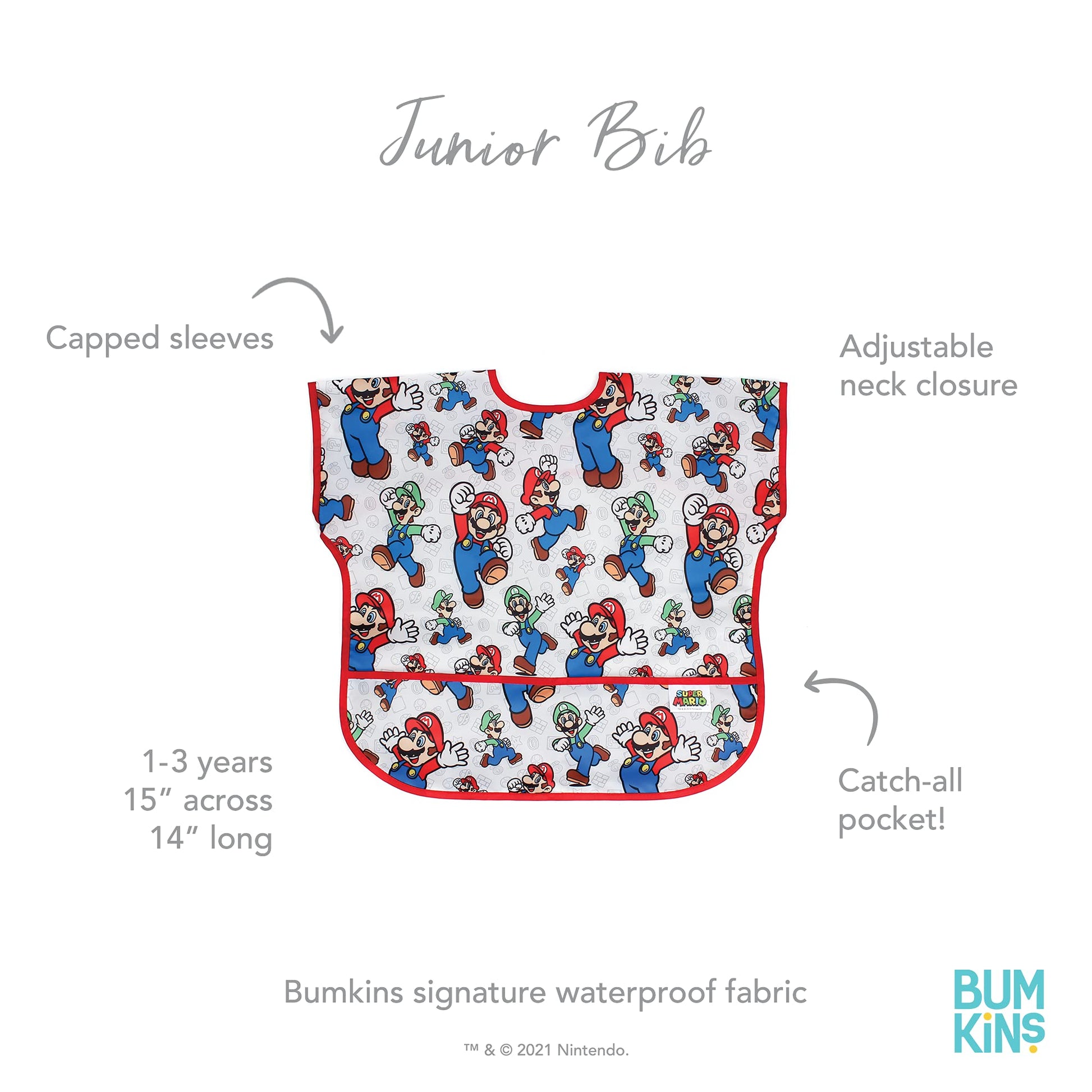 - Q: Is the design of the bib themed? A: Yes, the Bumkins Junior Bib features a fun Nintendo Mario & Luigi design, appealing to young fans of the characters.