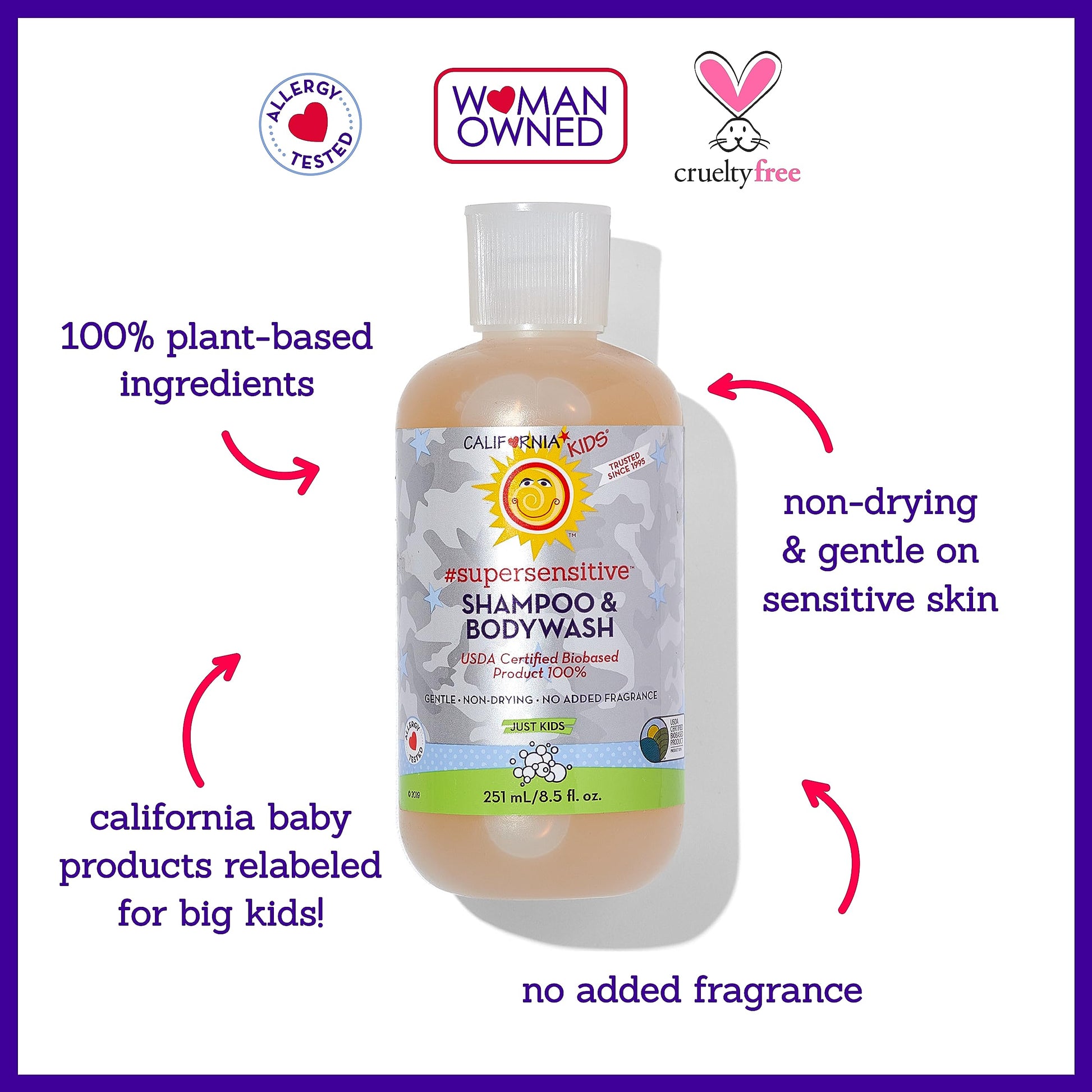 - Q: What allergens does this product avoid? A: California Kids Super Sensitive Shampoo and Bodywash is free of gluten, soy, sesame, oat, dairy, peanuts, and tree nuts (except coconut).