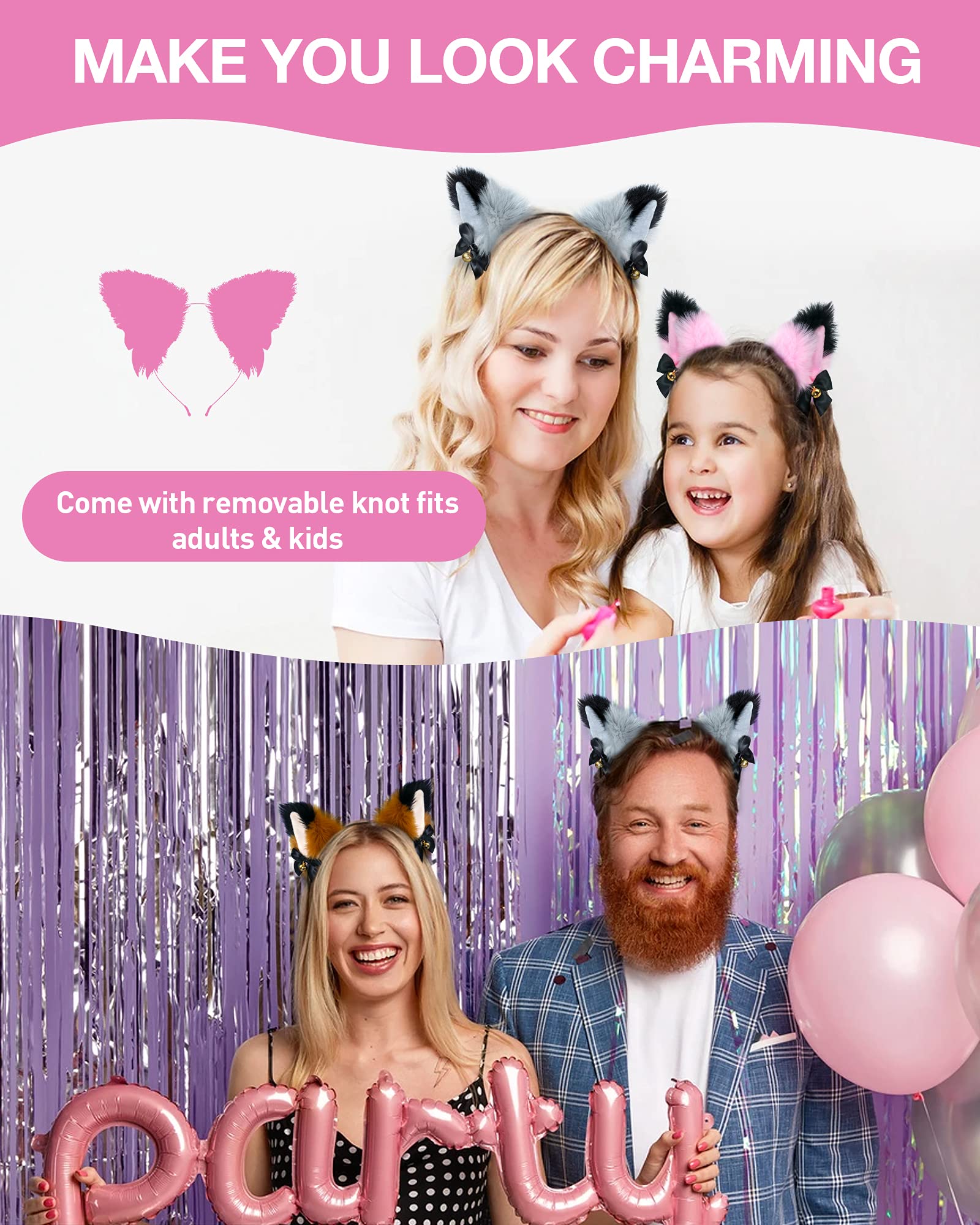 - Q: Are the ears on the headband adjustable? A: The ears are fixed on the headband for easy wearing, and the headband comes with a removable knot that fits both adults and kids.