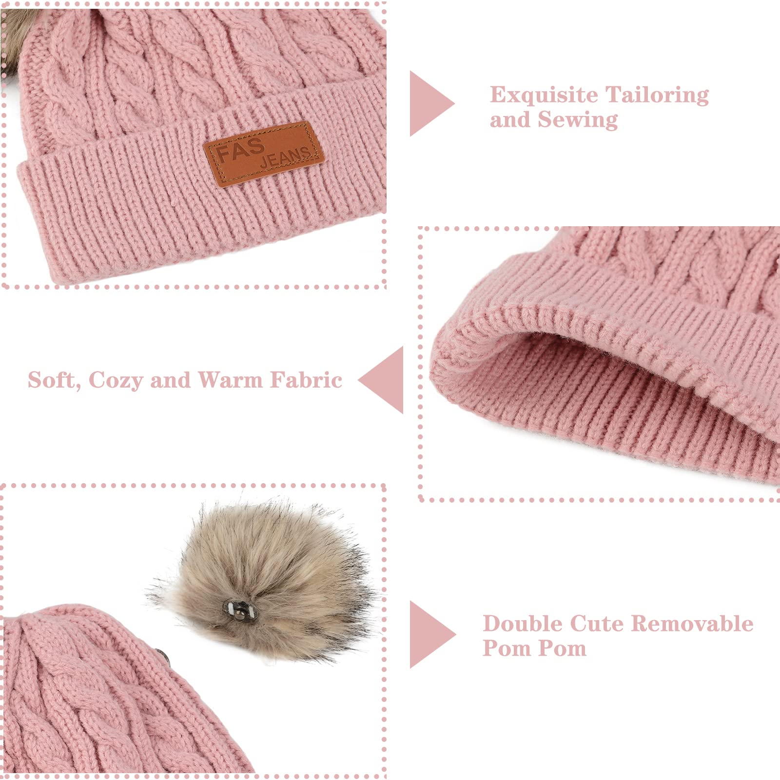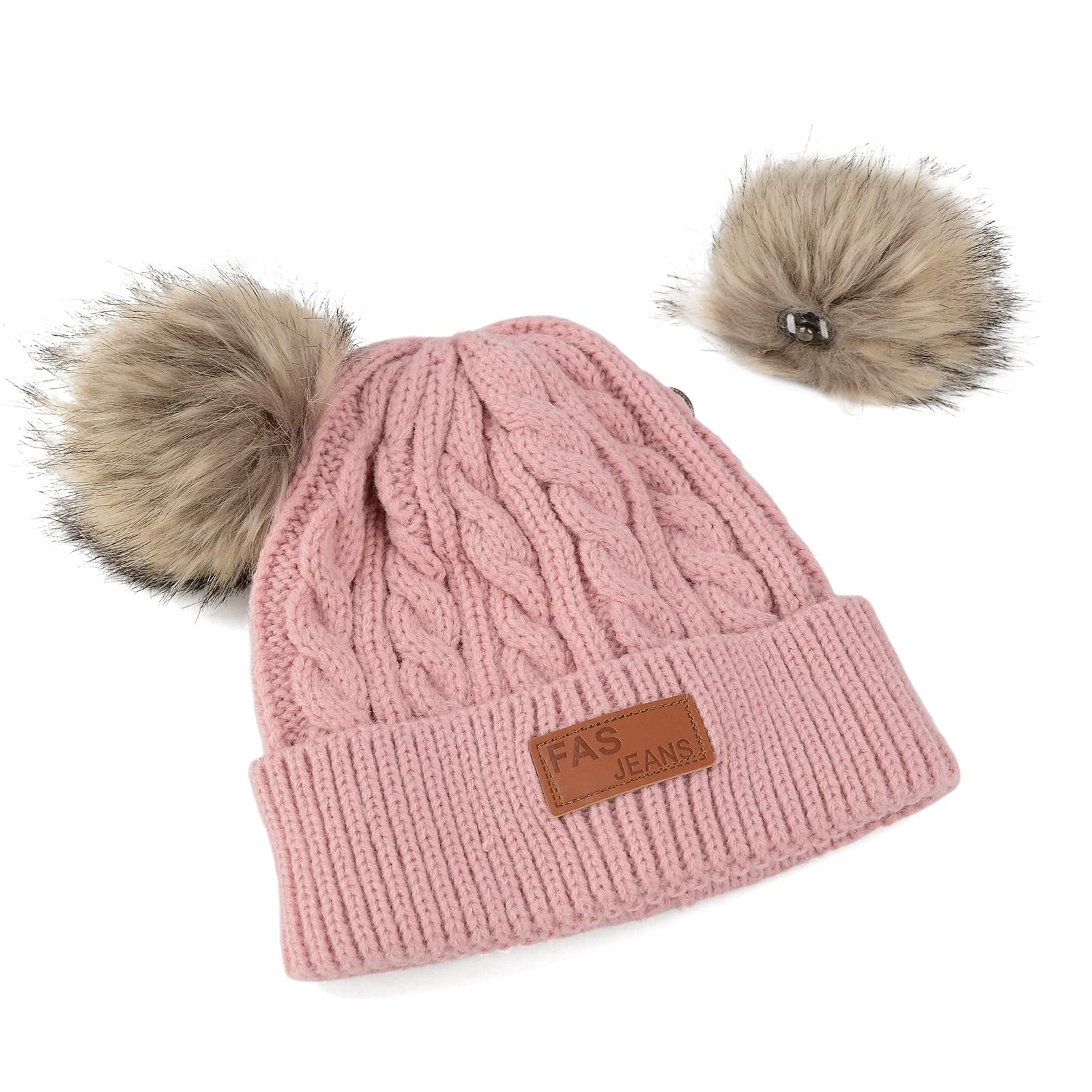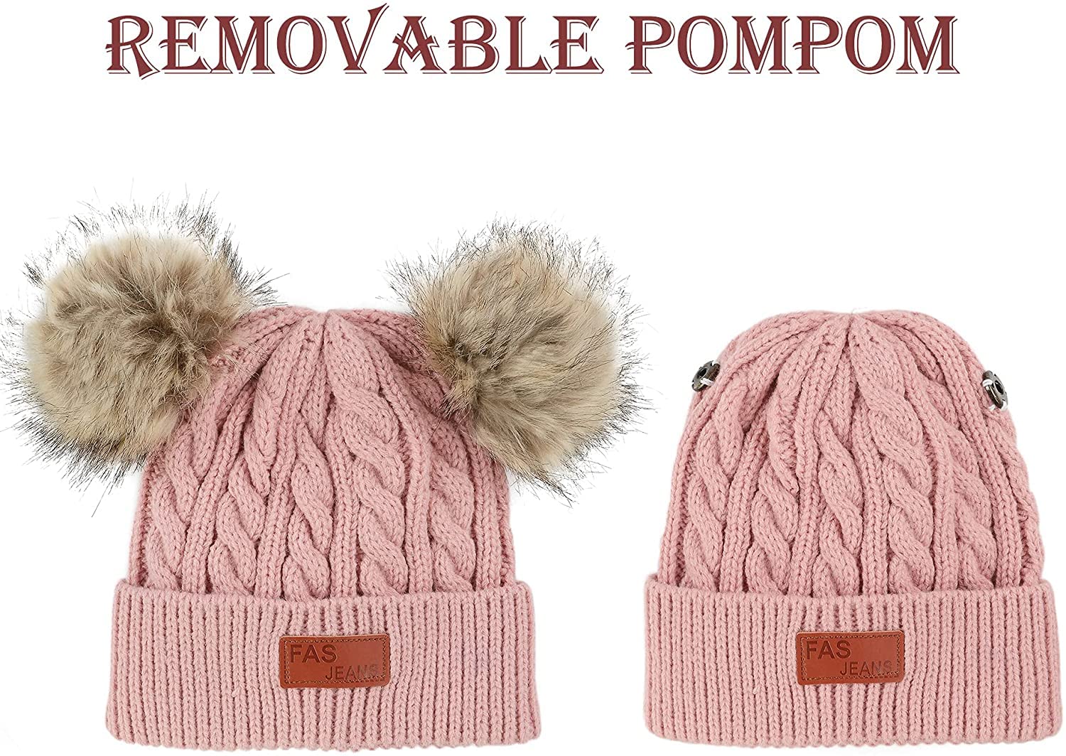 - Q: Can the pom poms be removed from the hat? A: Yes, the pom poms are removable and snap securely in place when attached.