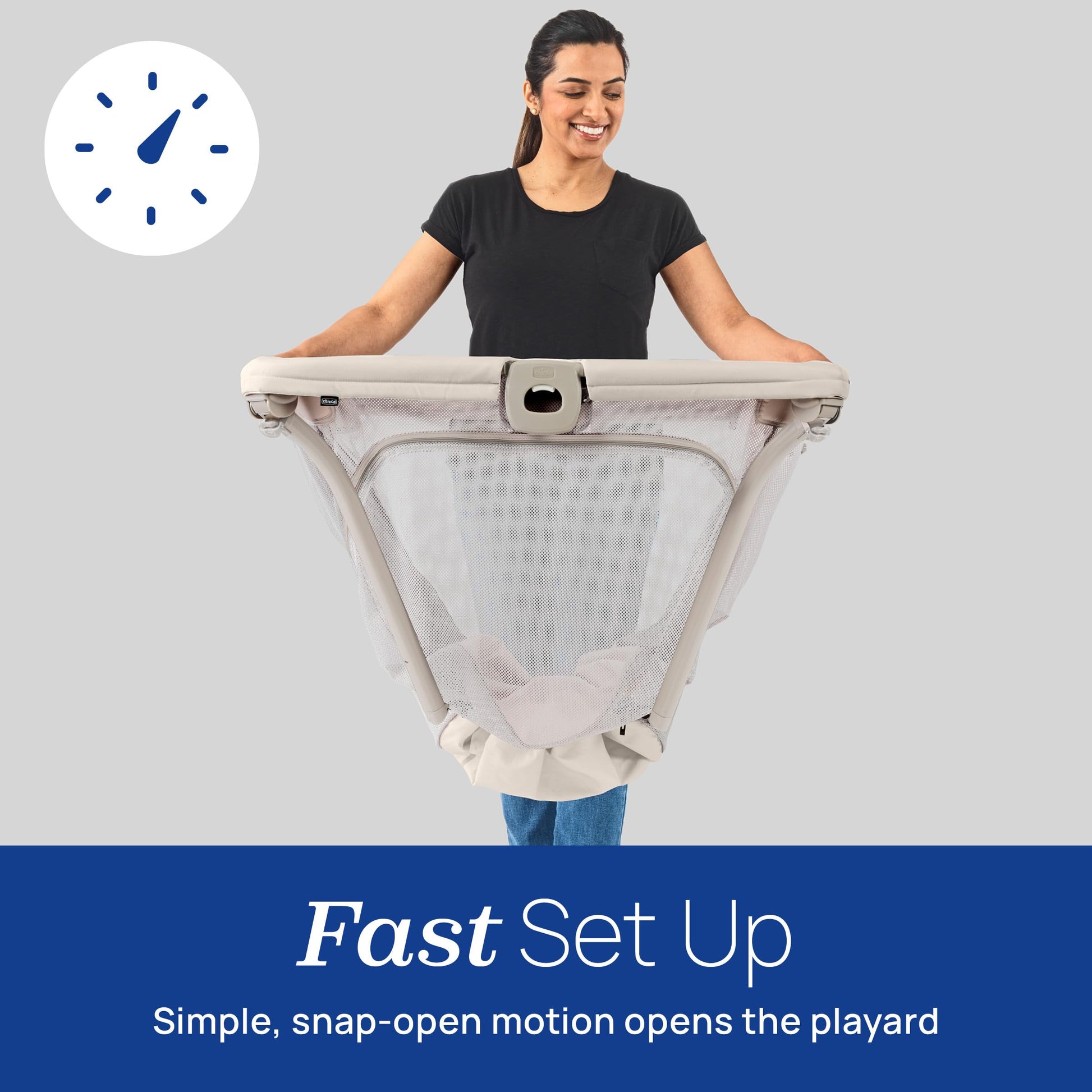 - Q: Is the travel playard easy to set up? A: Yes, the Chicco Alfa Lite features a fast, snap-open design that allows for quick and hassle-free setup.