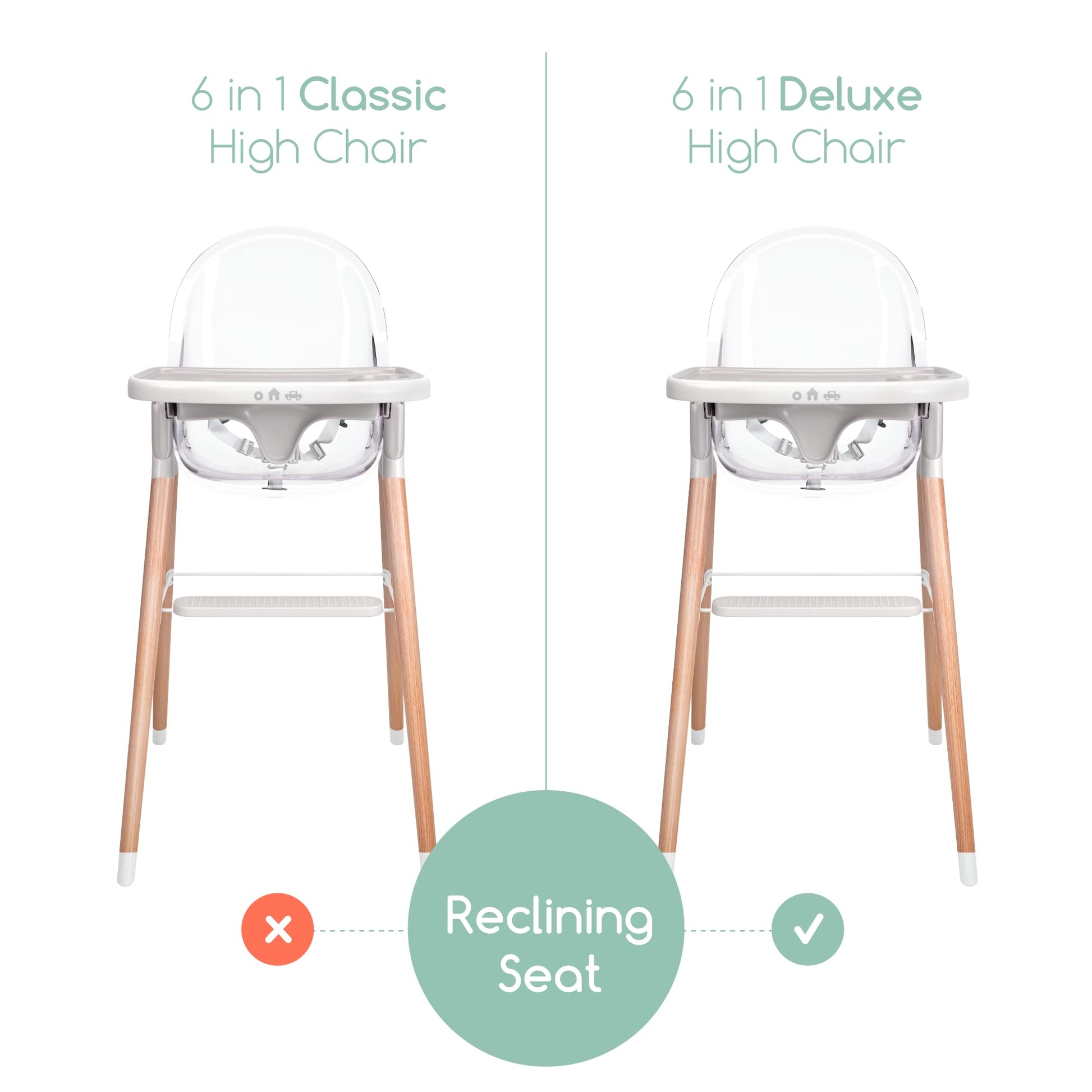 - Q: Does the Children Of Design Classic High Chair recline? A: No, this is the classic version of the high chair and it does not have a reclining feature.
