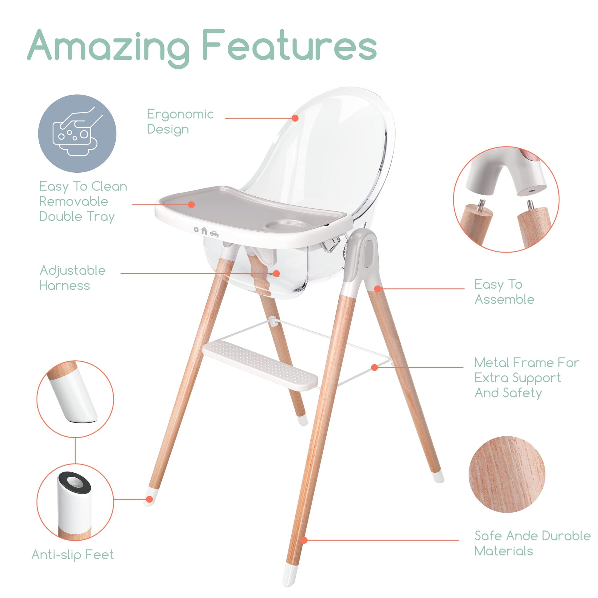 - Q: What safety features does this high chair have? A: The high chair includes an anti-tipping design with back legs that are slightly higher and a wide base for stability, ensuring your child's safety while seated.