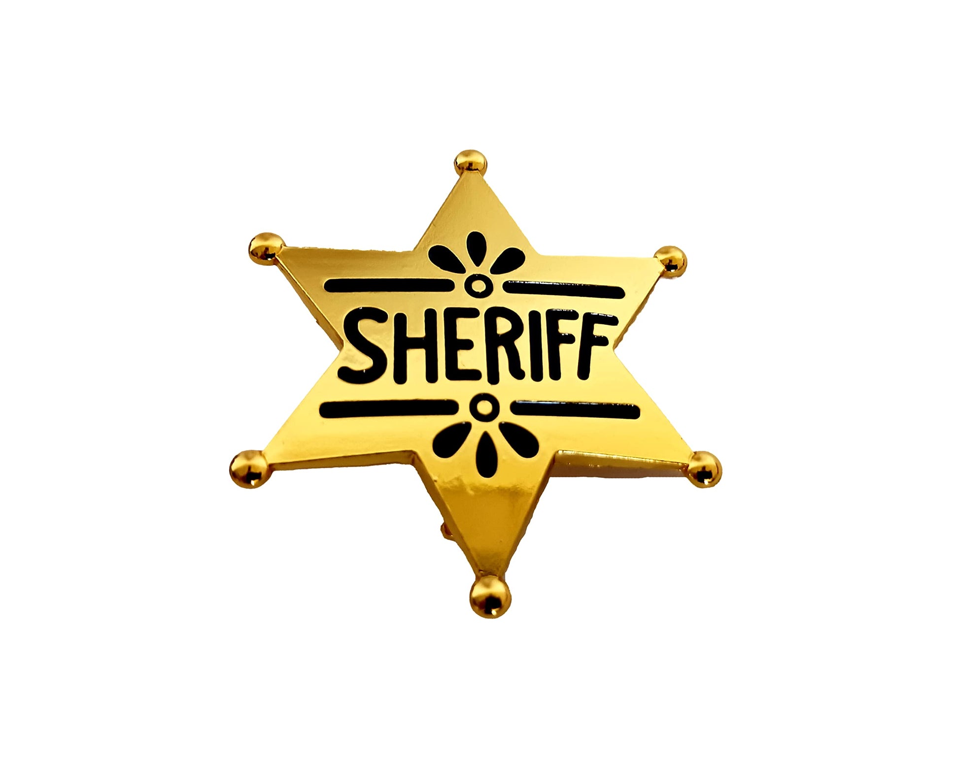 - Q: What is the color of the cowboy hat and the badge? A: The cowboy hat is brown, and the sheriff badge is gold.
