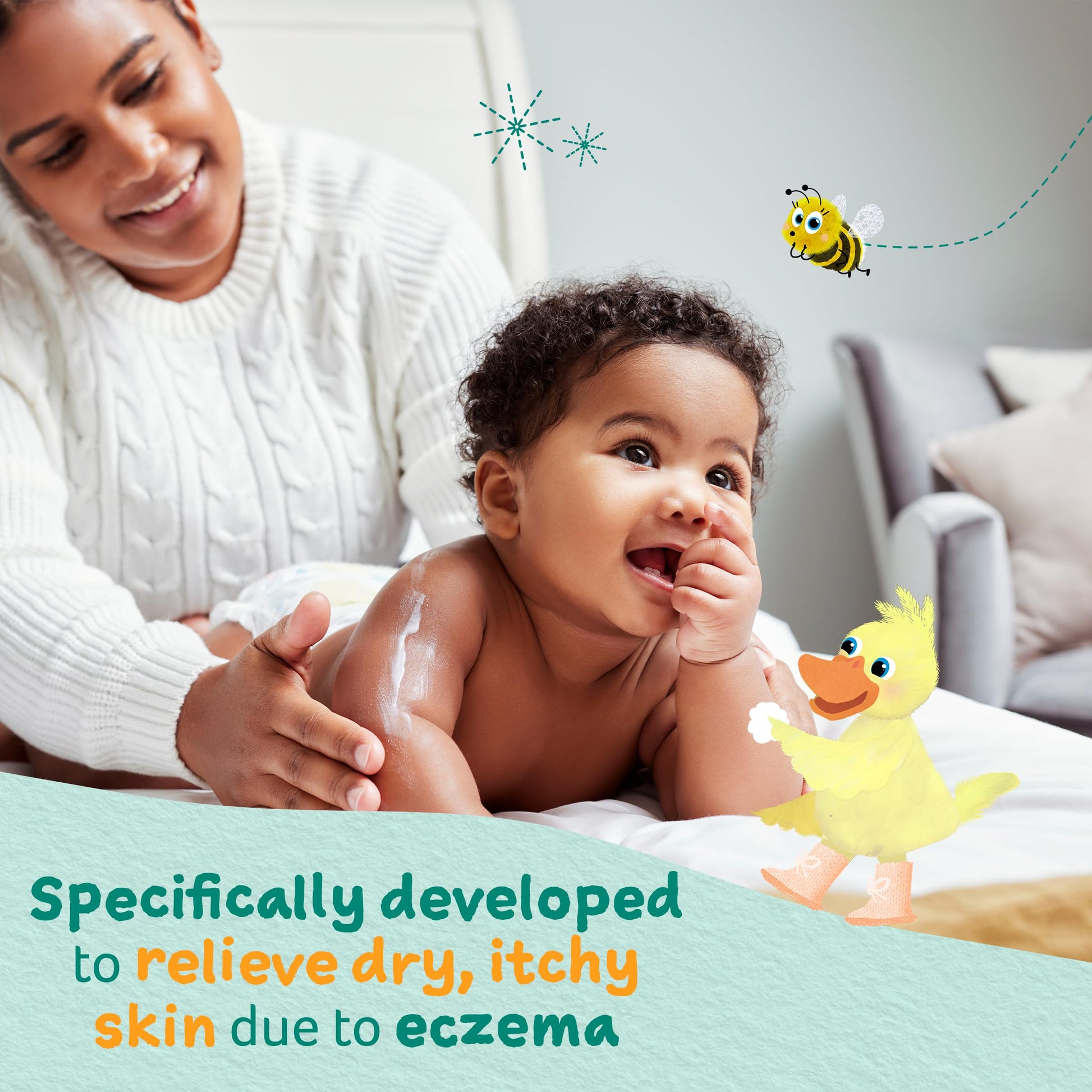 - Q: How does this lotion help with eczema? A: The lotion is formulated specifically for sensitive skin and eczema, providing gentle moisture to help soothe and protect dry skin.