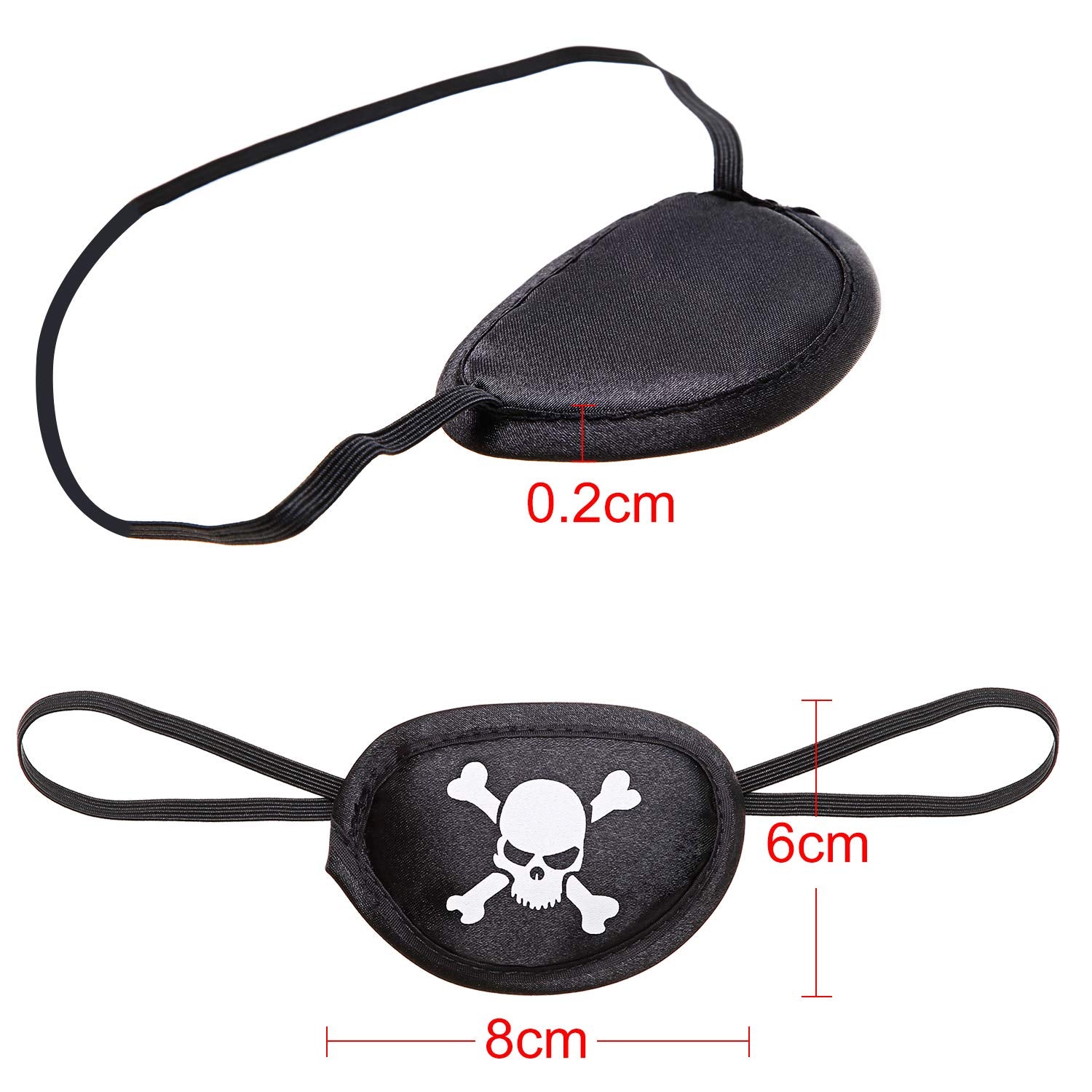 - Q: Do the eye patches have any special designs? A: Each eye patch features a printed design of a white skull and cross knives, enhancing the pirate theme.