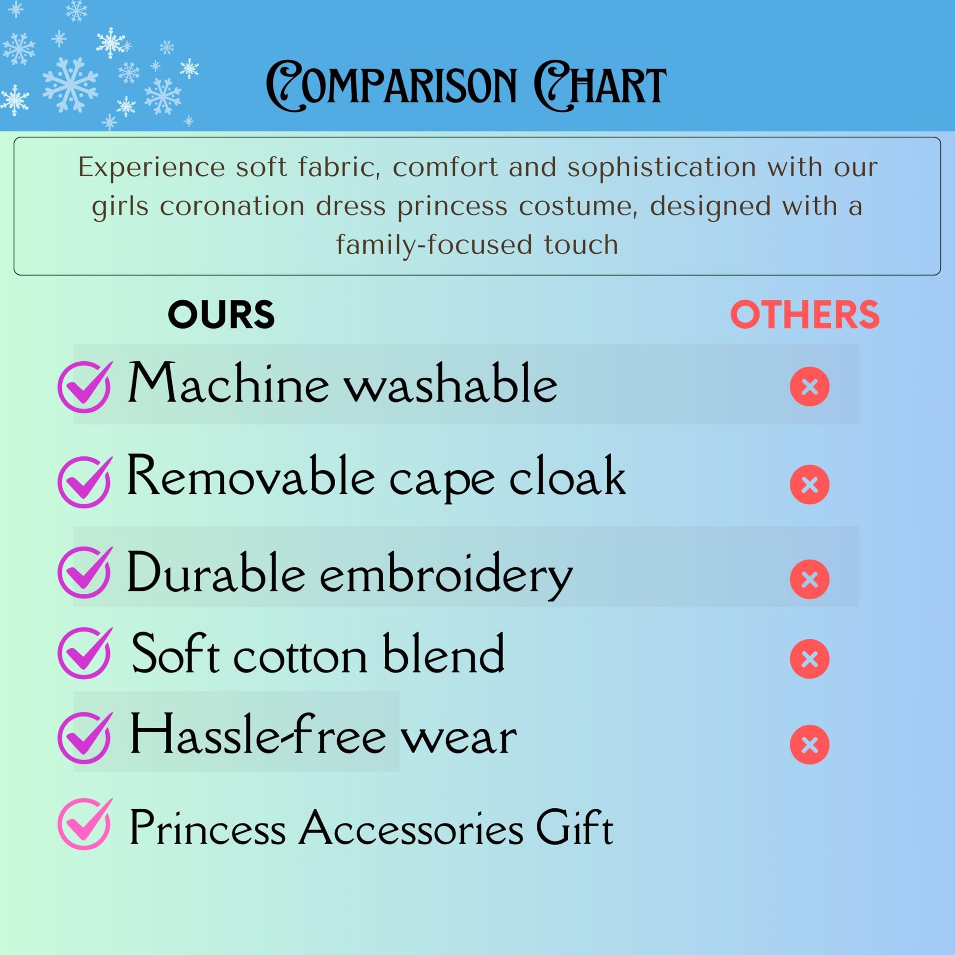 - Q: Does the costume come with accessories? A: Yes, the costume set includes a dress, cape, gloves, and a tiara, providing a complete princess look for your child.