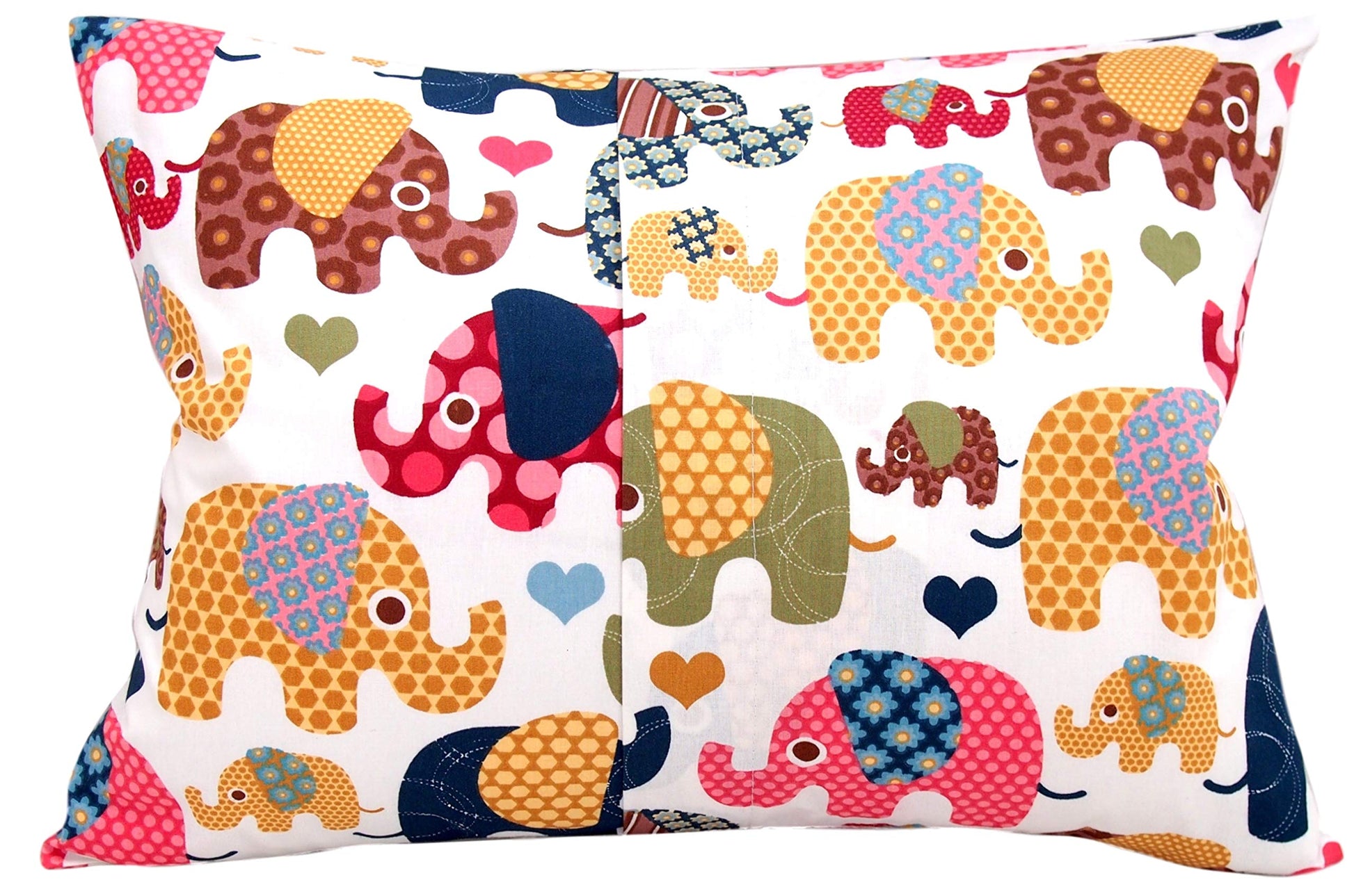 - Q: What size pillow does this pillowcase fit? A: This pillowcase is designed to fit a toddler pillow measuring 13 inches by 18 inches, but it can also accommodate a pillow measuring 14 inches by 19 inches.