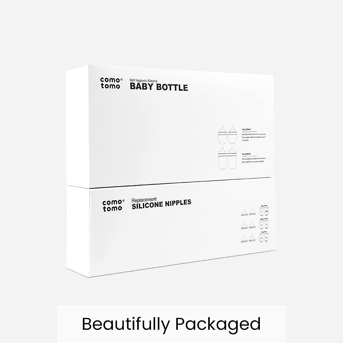 - Q: What is the material of the nipples? A: The nipples of Comotomo bottles are made from soft, silicone material, which is designed to closely resemble the feel of breastfeeding.
