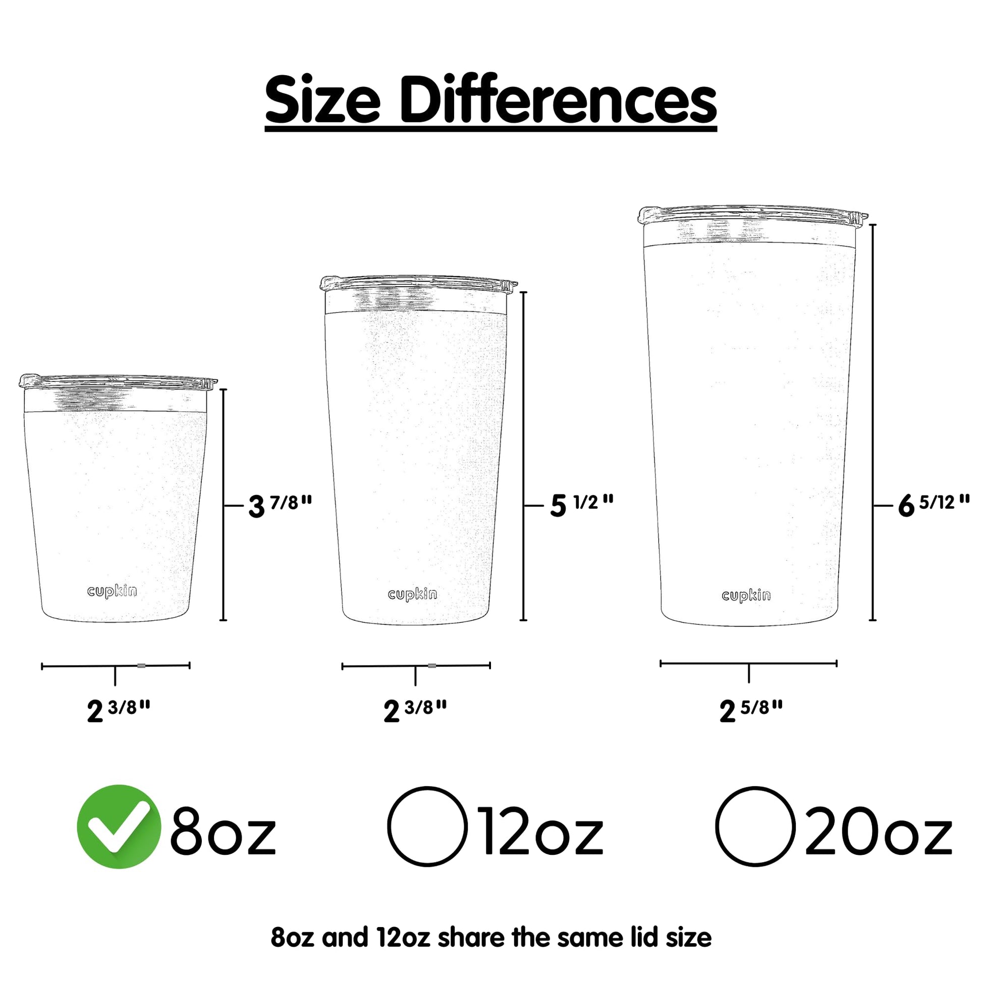 - Q: What is the capacity of the CUPKIN Steel Cups? A: Each CUPKIN Steel Cup has a capacity of 8 ounces, making them perfect for toddlers.