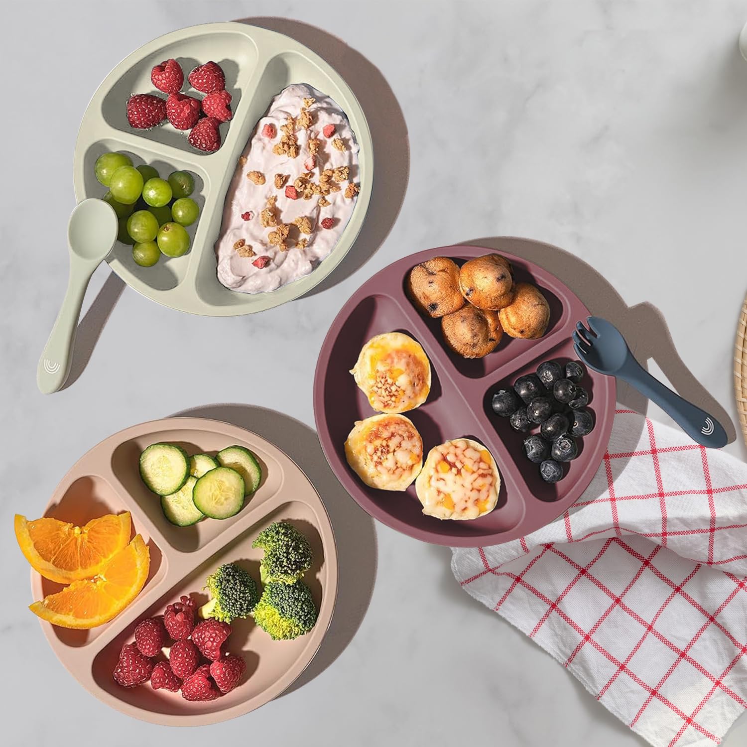 Cutebe 3 Pack Suction Plates For Baby Food Grade Silicone Baby Plates With Suction Microwave & Dishwasher Safe Toddler Plates Di