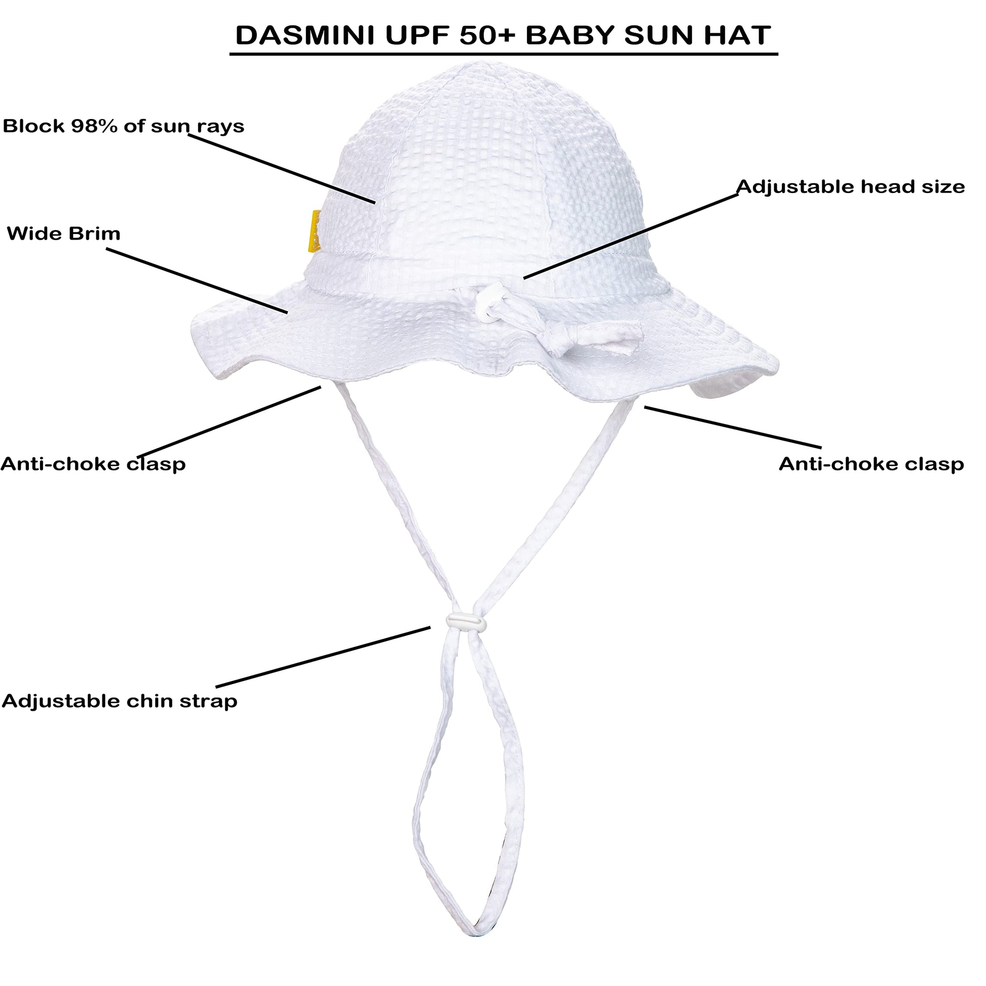 - Q: What age group is the DASMINI Baby & Toddler Wide Brim Sun Hat suitable for? A: The DASMINI Baby & Toddler Wide Brim Sun Hat is suitable for children aged 0 to 5 years, with sizes available for 0-6 months, 6-24 months, and 2-5 years.