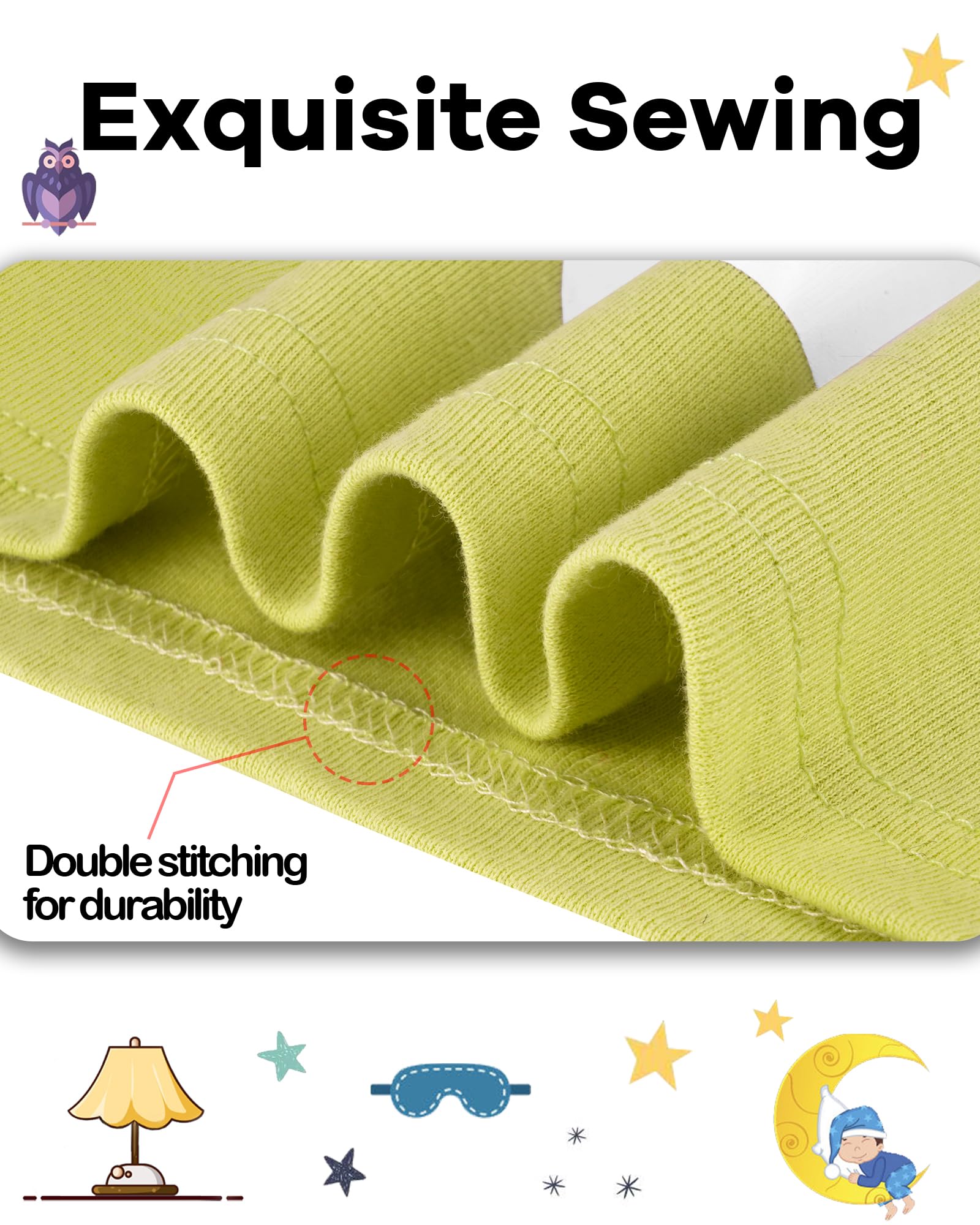 - Q: What design features do these pajamas have? A: The pajamas feature a round neck for easy wear, an elastic waistband for comfort, and a tagless design to protect delicate skin.