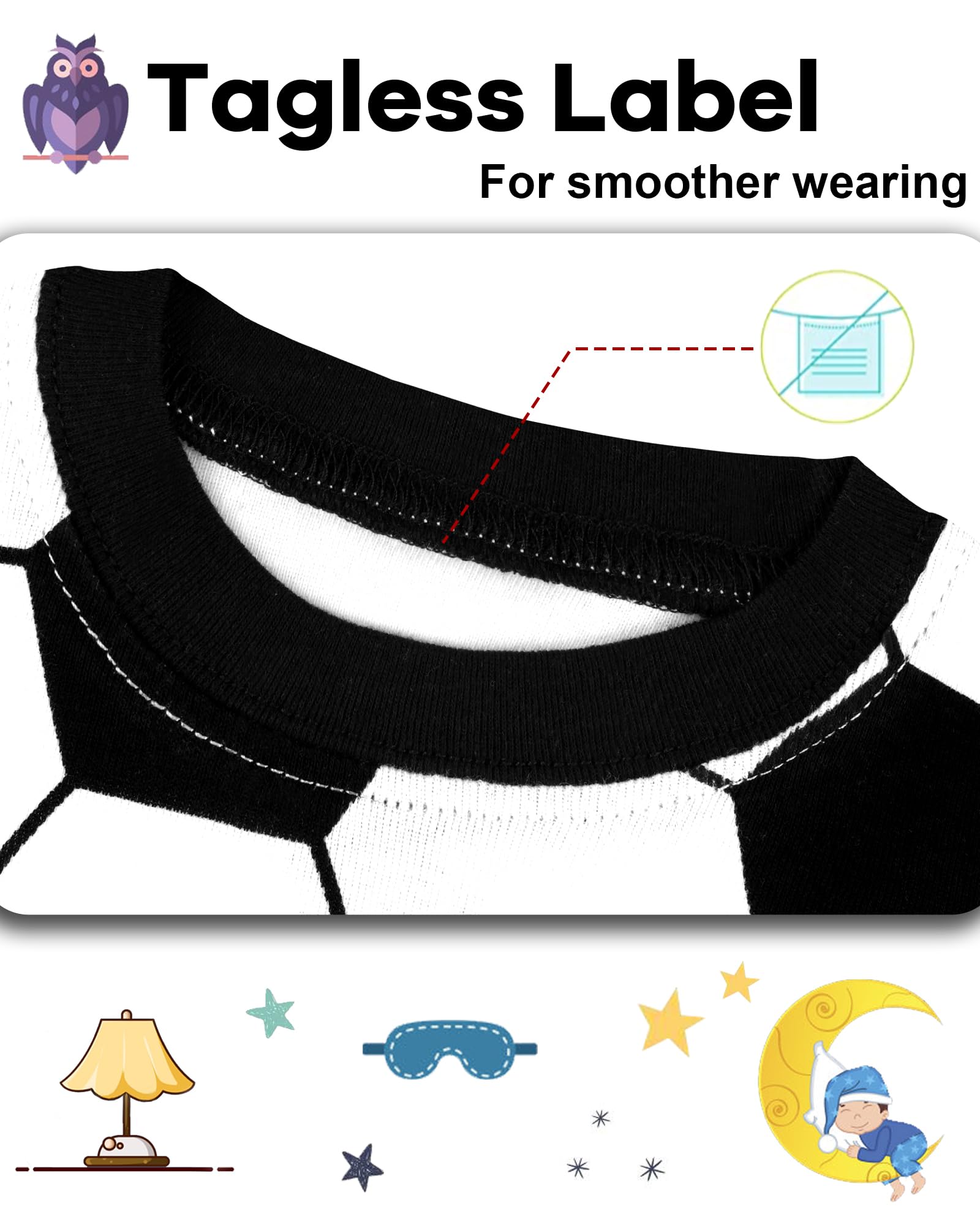 - Q: What are the design features of the pajamas? A: The pajamas feature a round neck for easy on and off, an elastic waistband for comfortable fit, and a tagless design to protect children's delicate skin.