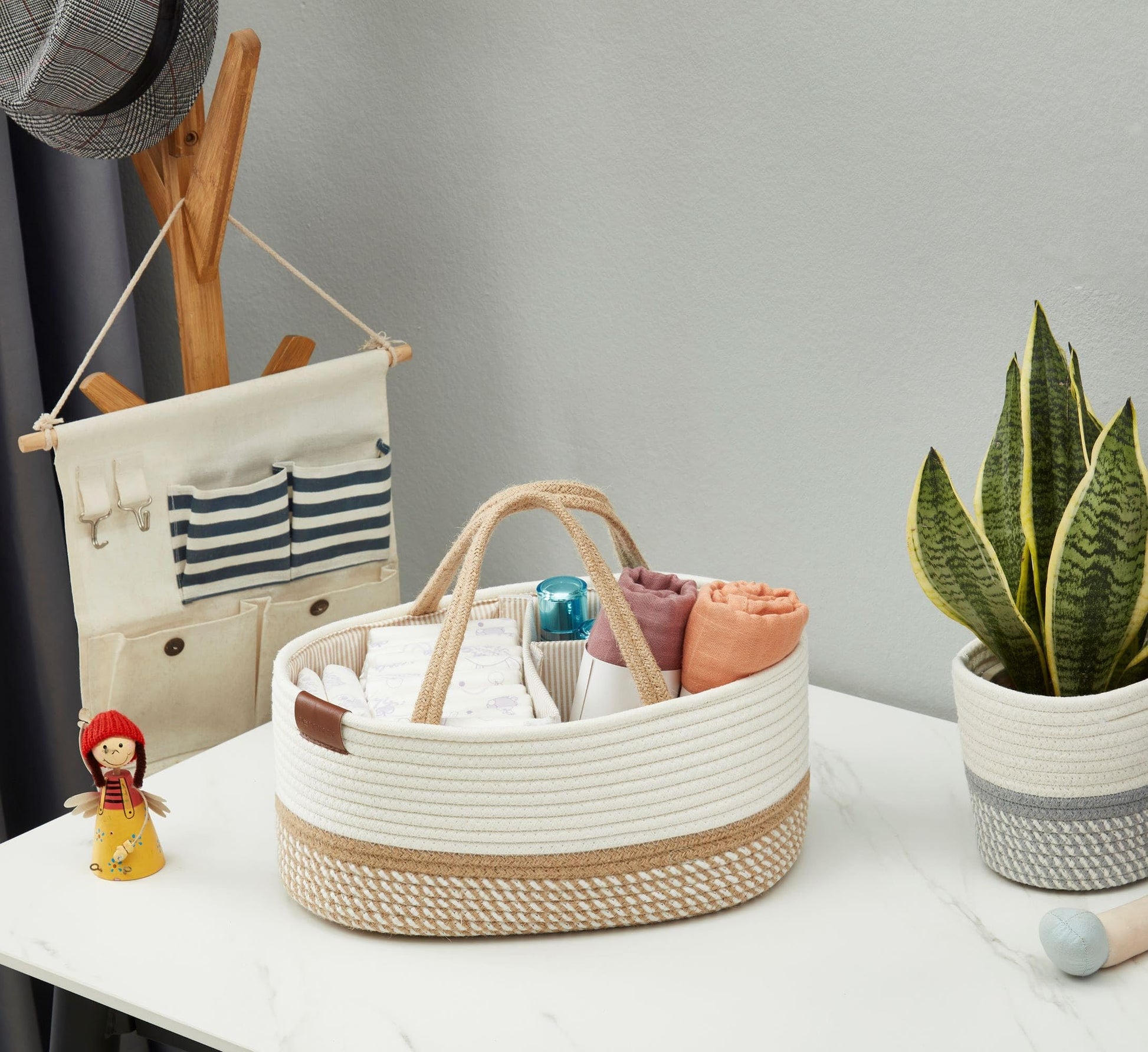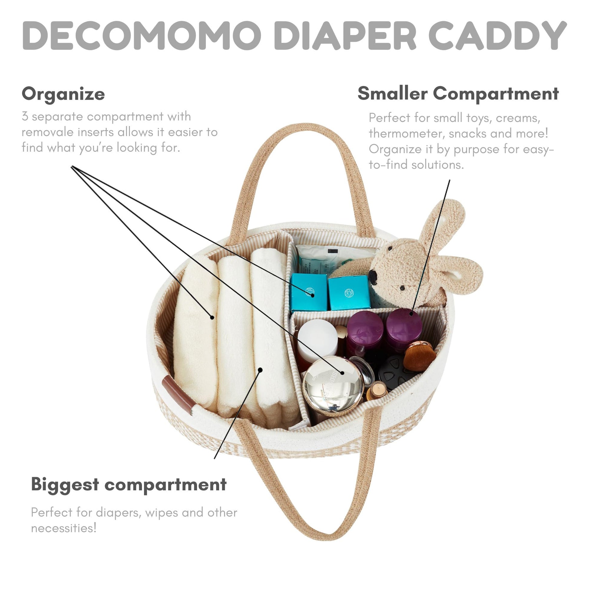 - Q: What makes this caddy a good gift choice? A: The DECOMOMO Diaper Caddy Organizer is a practical and charming gift for occasions such as baby showers, weddings, and housewarmings, combining functionality with stylish design.