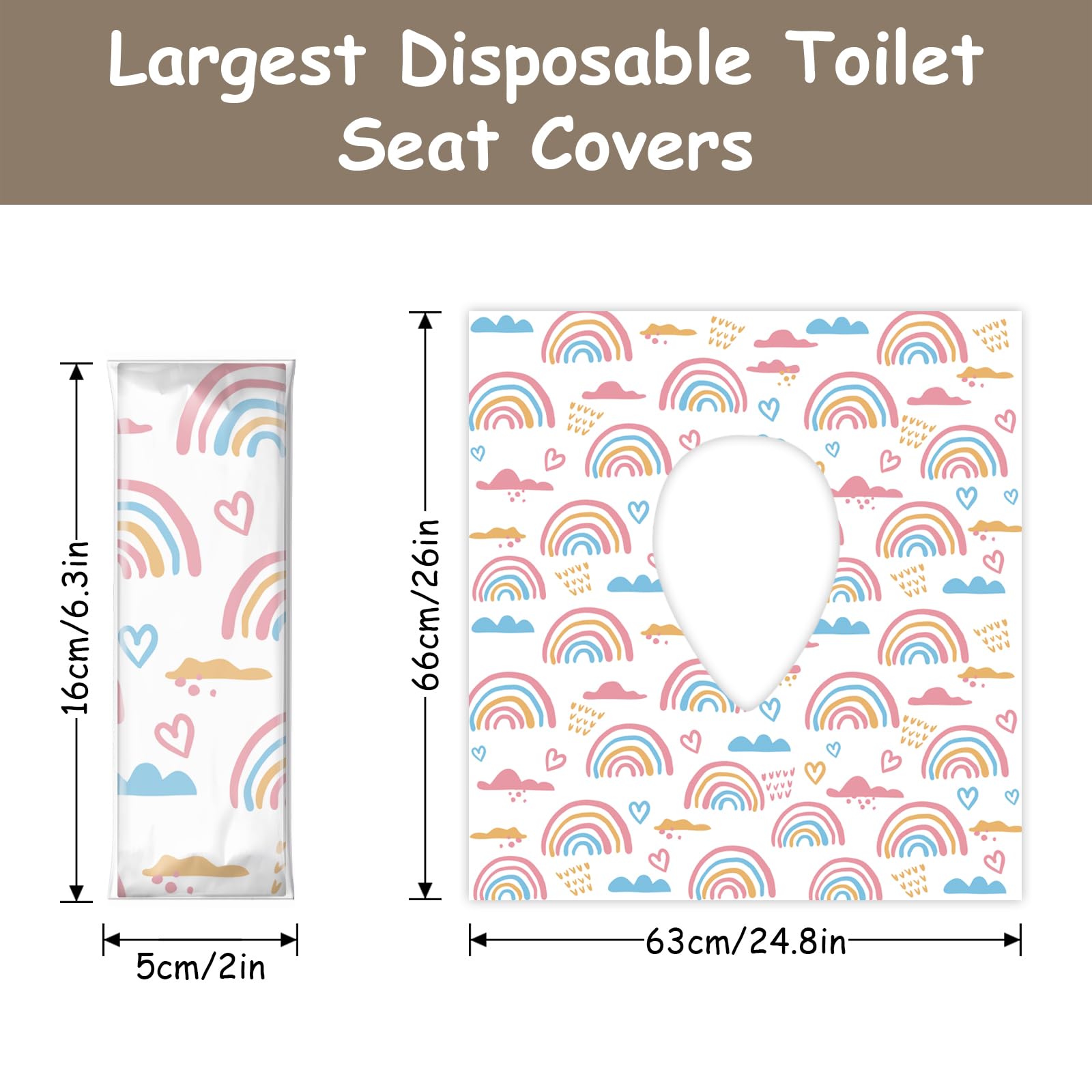 - Q: What size are the toilet seat covers? A: The toilet seat covers measure 26 inches by 26 inches, which is an extra-large size designed to provide full coverage of the toilet seat.