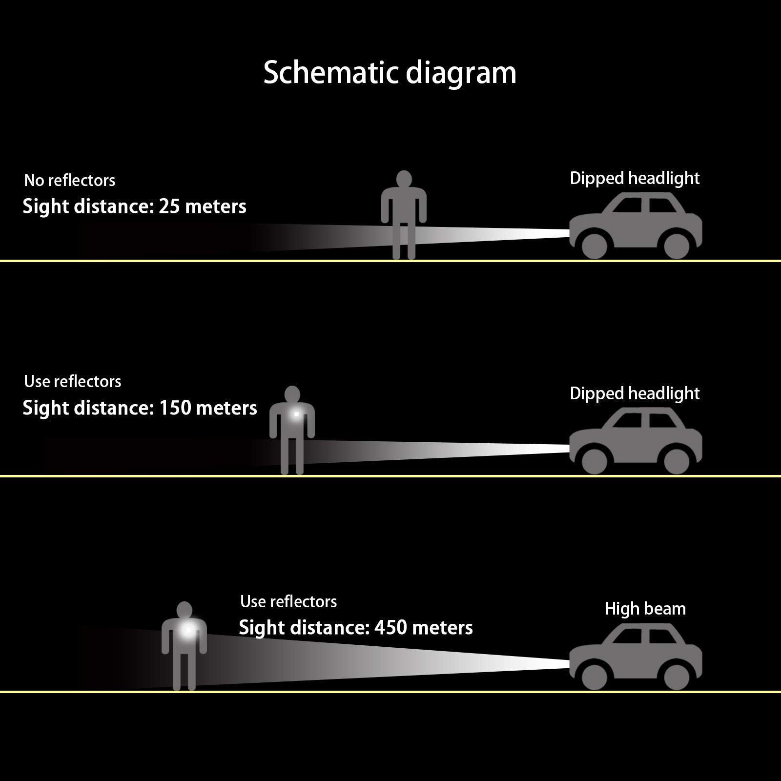 - Q: What is the visibility range of these reflectors? A: The reflectors significantly improve visibility at night, with a range of up to 500 feet, or approximately 150 meters.