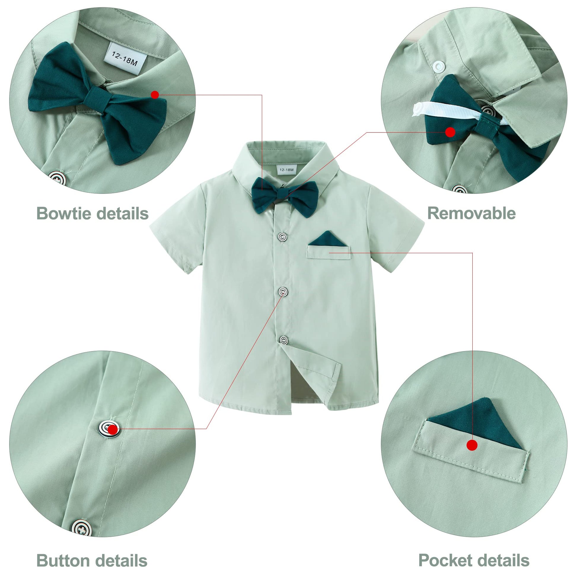 - Q: Is the bow tie removable? A: Yes, the bow tie included in the outfit set is removable, allowing for versatility in styling.