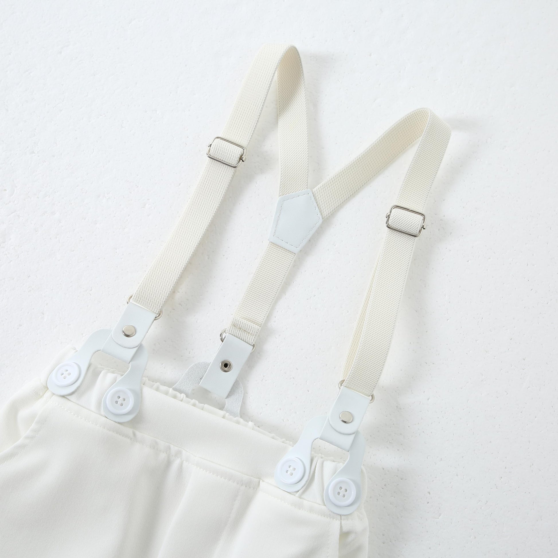 - Q: What is the style of the pants included in the set? A: The outfit includes suspender pants that add a gentlemanly touch, designed specifically for baby boys.