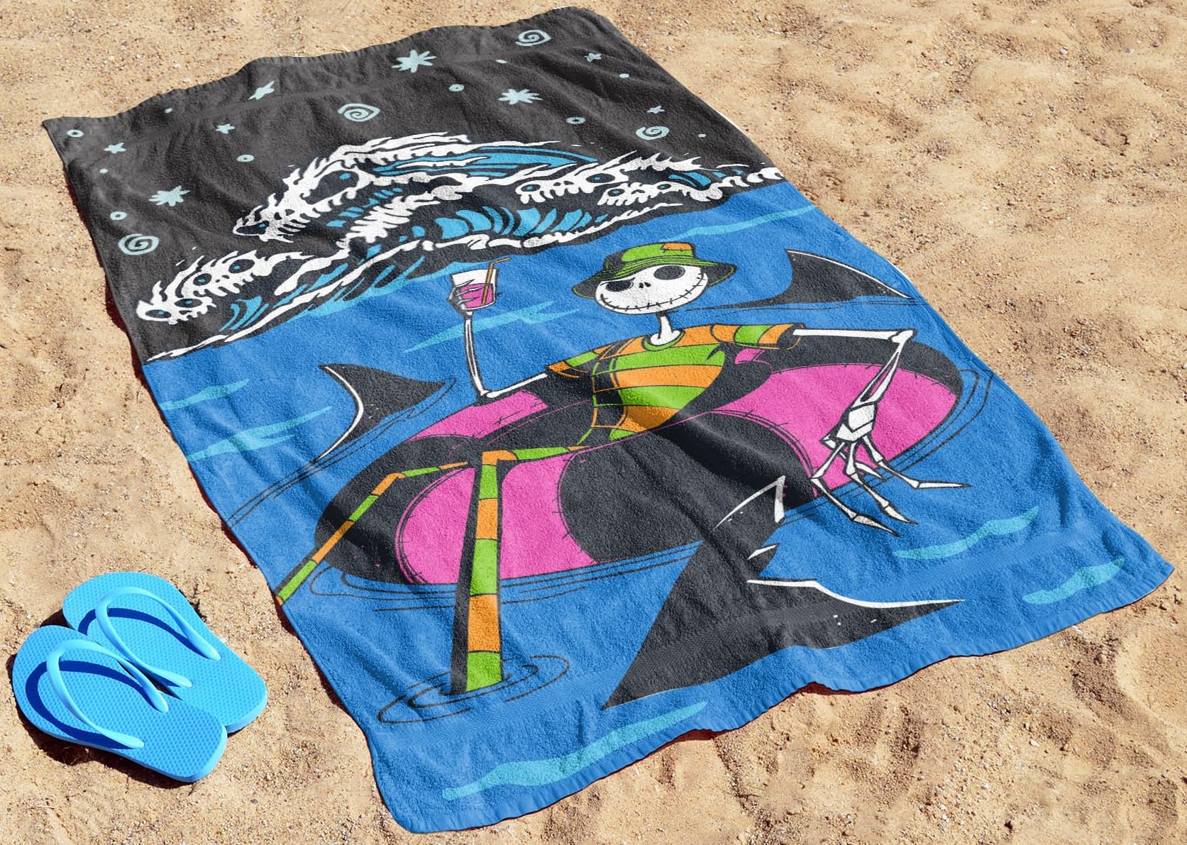 - Q: Does this towel feature any characters from the movie? A: Yes, the towel features a full-color print of Jack Skellington from the Nightmare Before Christmas, making it appealing to kids.
