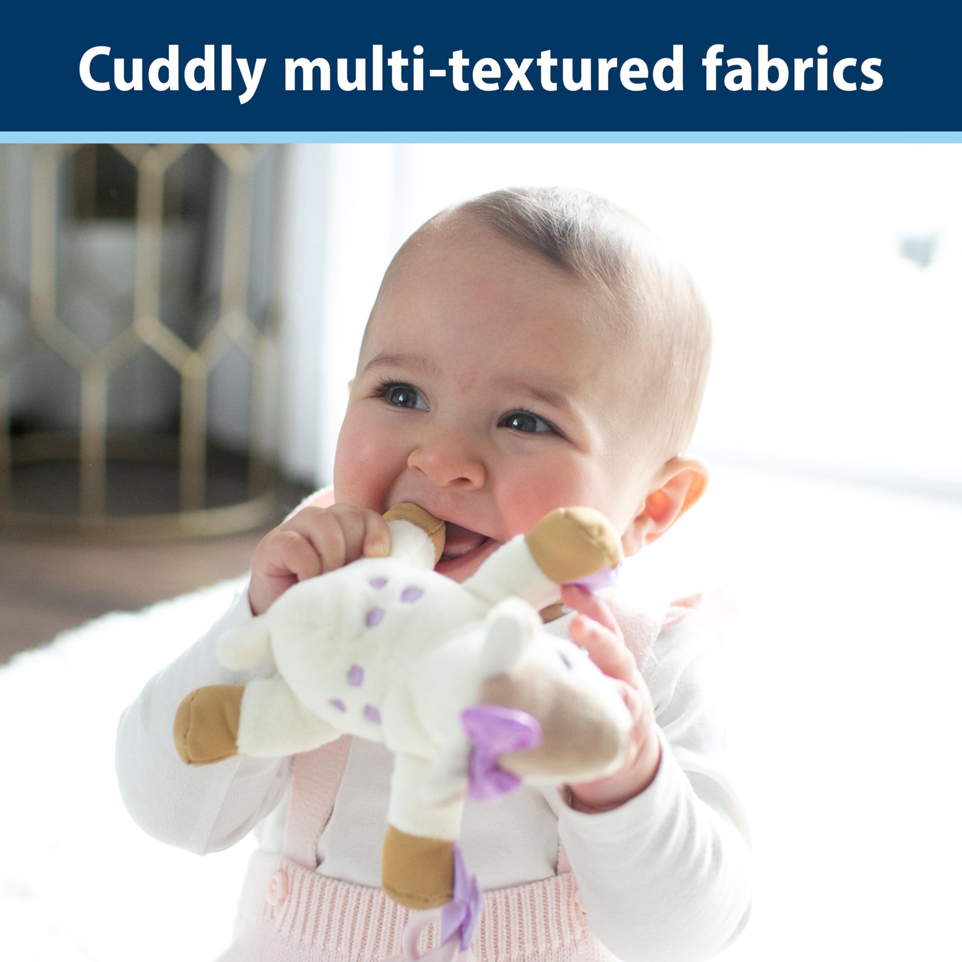 - Q: How does the Lovey grow with my baby? A: The Lovey can easily adapt to include teethers as your baby grows, providing comfort for sore gums during teething.