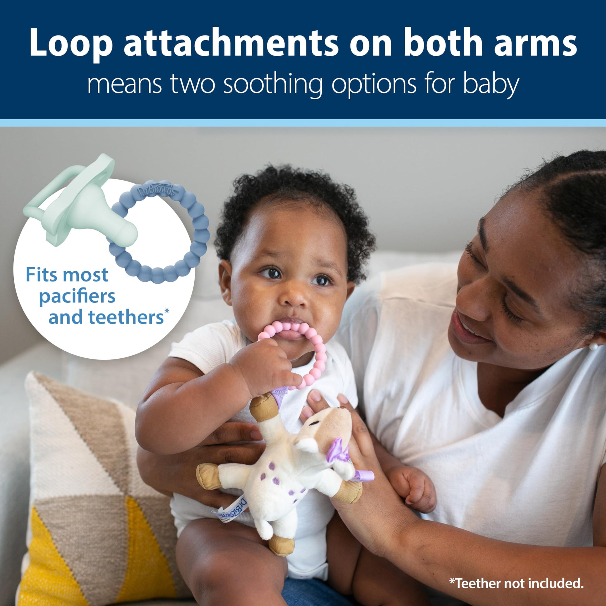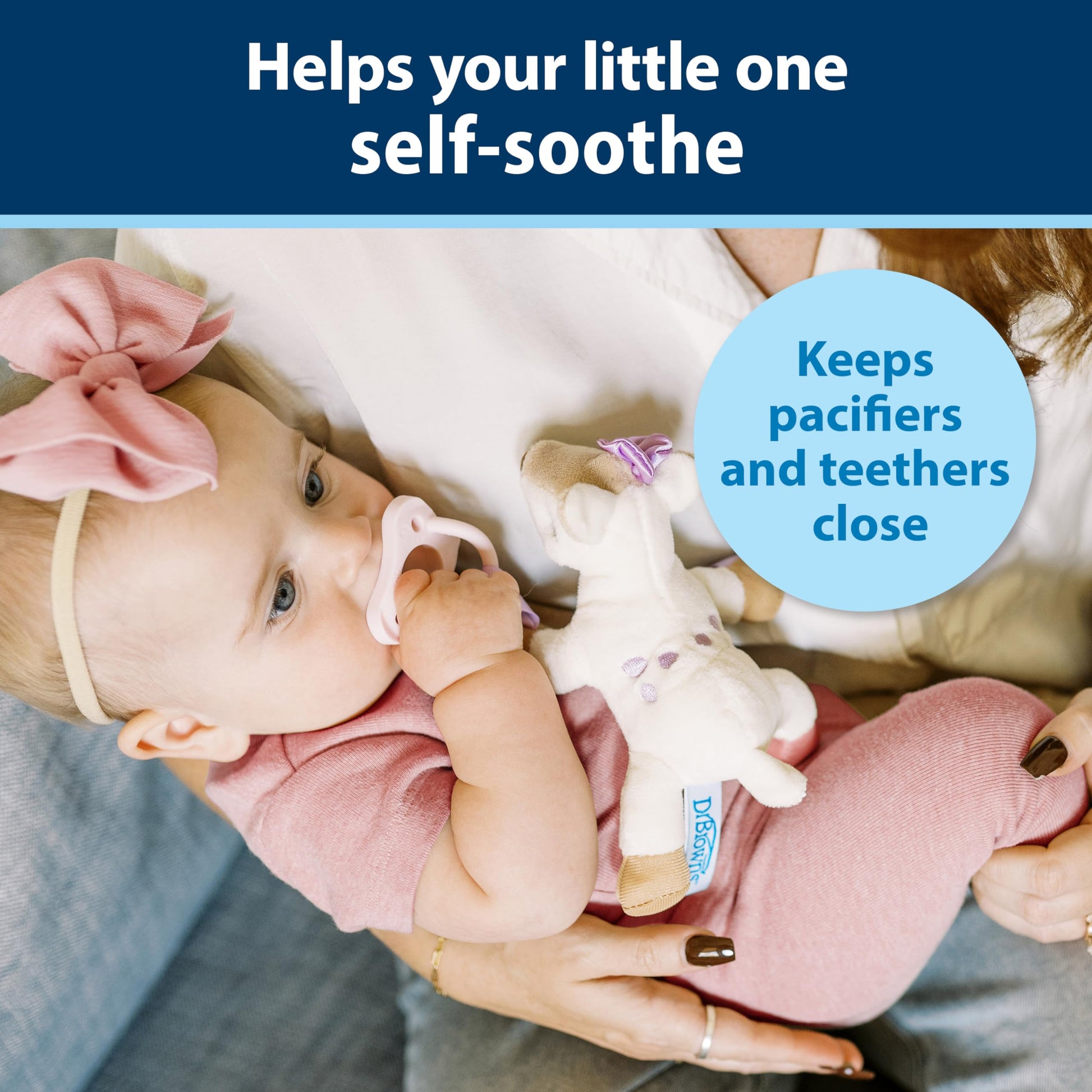 - Q: What types of pacifiers and teethers can be used with the Lovey? A: The Lovey can hold any of Dr. Brown's pacifiers and teethers, as well as most other brands, thanks to its secure loop attachments.