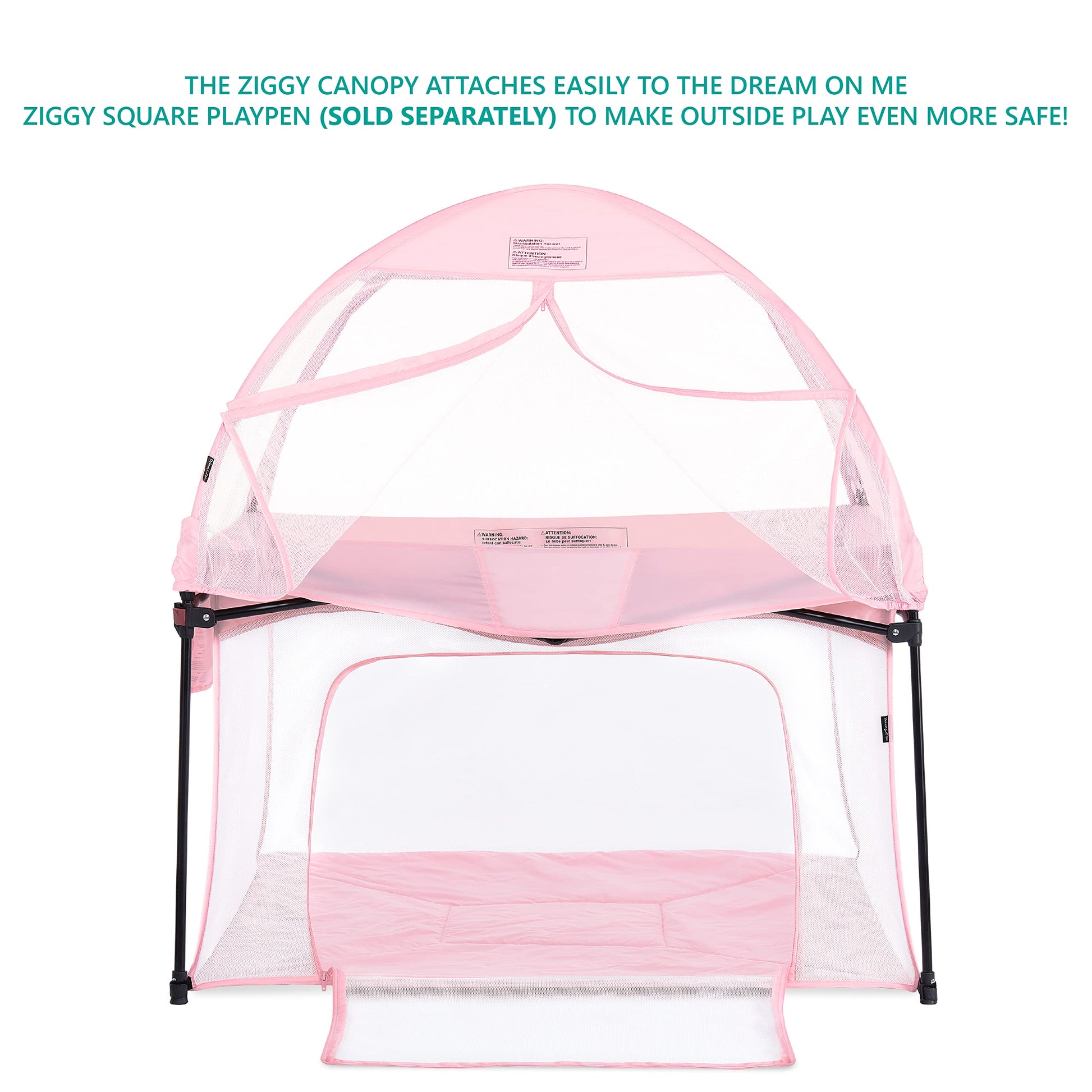 - Q: What is the Dream On Me Ziggy Canopy designed for? A: The Dream On Me Ziggy Canopy is designed to provide protection for your child from the sun, rain, and insects during outdoor play when used with the Dream On Me Ziggy Square Playpen.