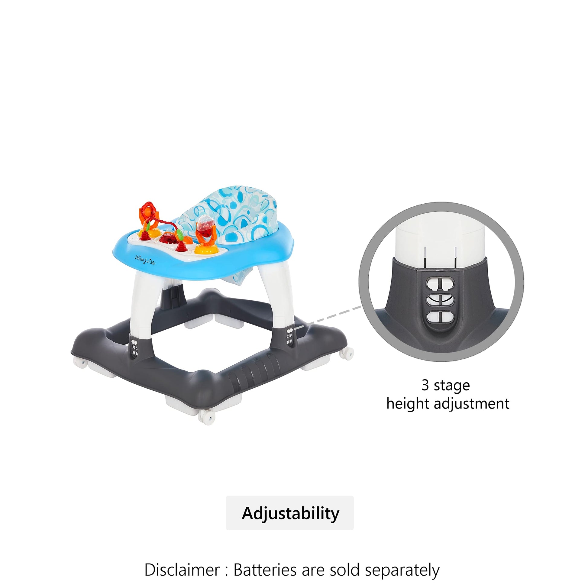 - Q: Does it require batteries, and if so, what type? A: Yes, the Explorer Baby Walker requires 2 AA batteries, which are not included in the package.