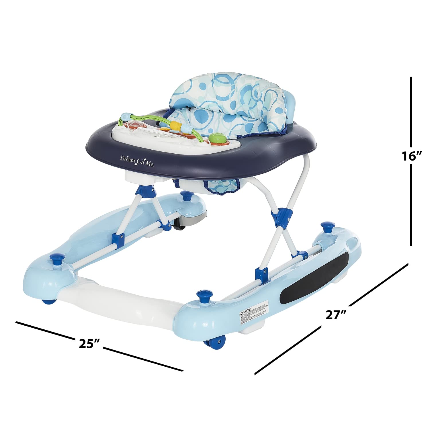 - Q: How adjustable is the seat height on this walker? A: The seat height of the Dream On Me Go-Getter Activity Walker is adjustable to accommodate your growing baby, allowing for a comfortable fit as they develop.