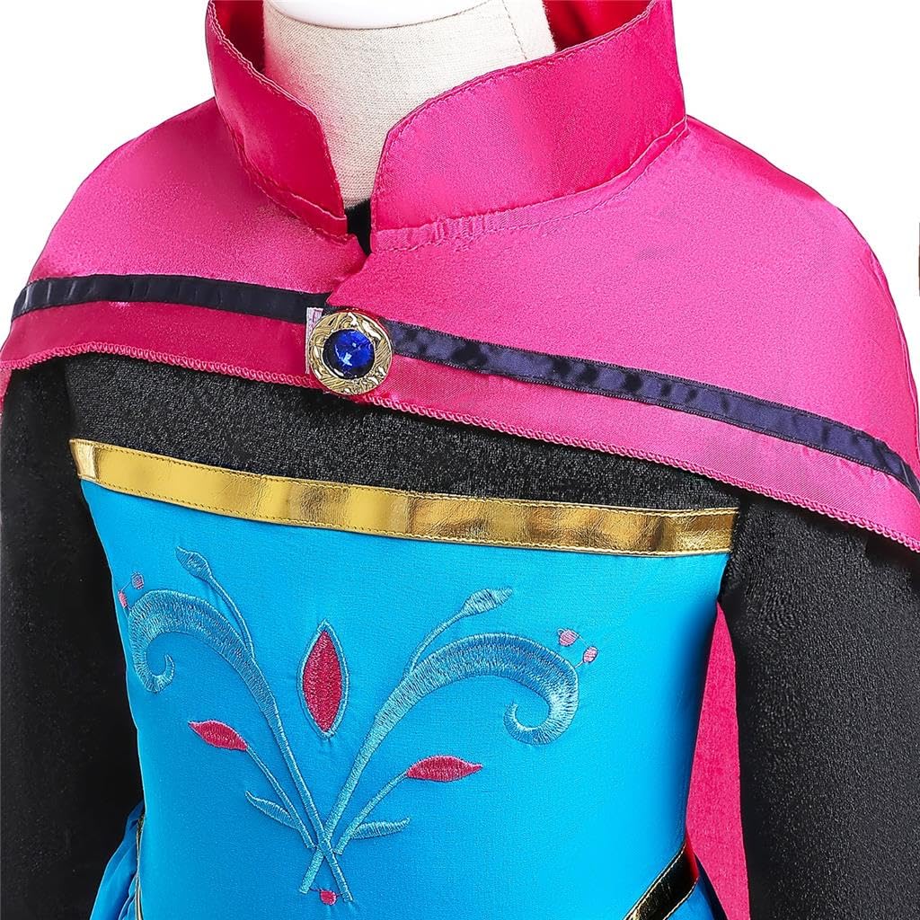 - Q: What is the design of the Ice Princess costume? A: The costume features a bodice with velvet long sleeves, embellished with tulip embroideries and golden trims, and includes a pink detachable cape robe with a snowflake brooch.